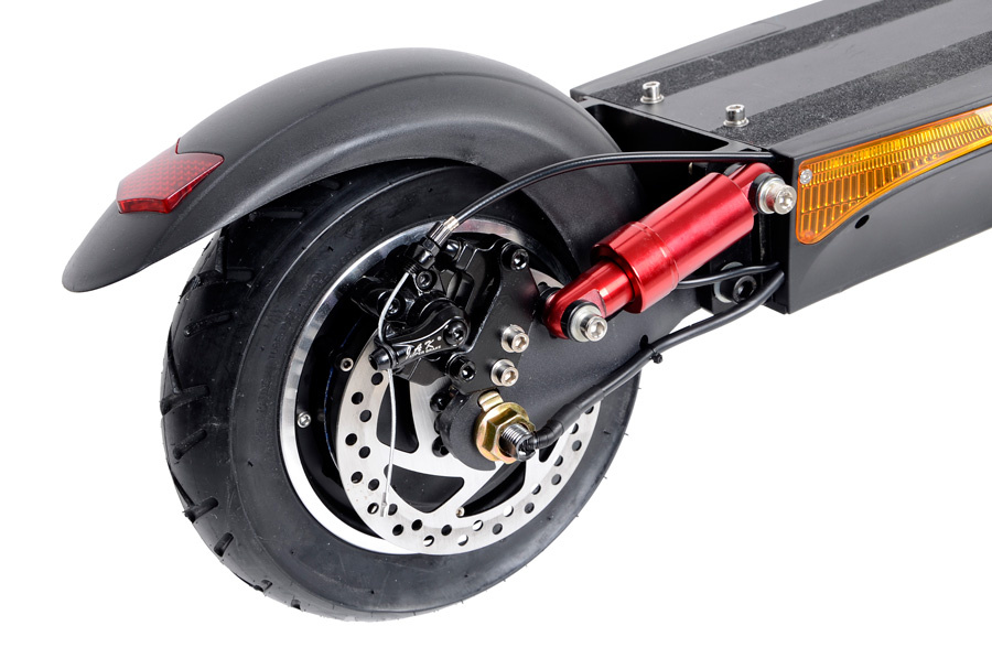 Rozšířené pneu 2,5" (6,4 cm) s průměrem 10" (25,4 cm) výborně přilnou i k vlhkému povrchu. Kola jsou chráněna odolnými blatníky.