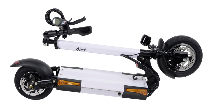 Elektrická koloběžka City Boss GV5 je skvělou volbou na cesty po městě či na výlet do přírody. S dvojitě jištěným skládacím mechanizmem jí složíte či rozložíte do 8 vteřin a při délce složeného rámu 116 cm a hmotnosti 22 kg jí snadno převezete autem, vlakem, MHD nebo uskladníte doma či v garáži. Skládací mechanizmus lze po opotřebení seřídit a odstranit tak případnou nežádoucí vůli v řízení.