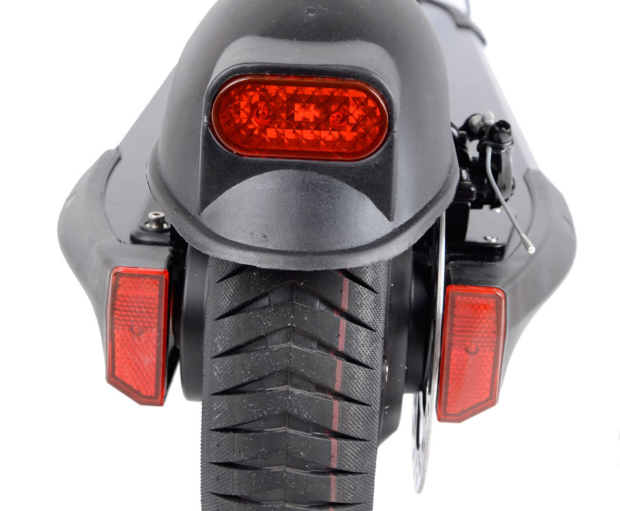 Koloběžku i při větších rychlostech spolehlivě zastavíte nezávislou zadní a přední mechanickou kotoučovou brzdou. Robustní rám koloběžky z leteckého hliníku certifikovaný normou ISO snese zatížení až 150 kg. S výškově nastavitelnými řídítky s ergonomickými gripy je koloběžka vhodná pro jezdce s postavou 150 - 210 cm. Z důvodu bezpečnosti je doporučený věk pro používání koloběžky od 16 let. Na 50 cm dlouhém a 21 cm širokém nášlapu se pohodlně svezete s chodidly za sebou či vedle sebe.