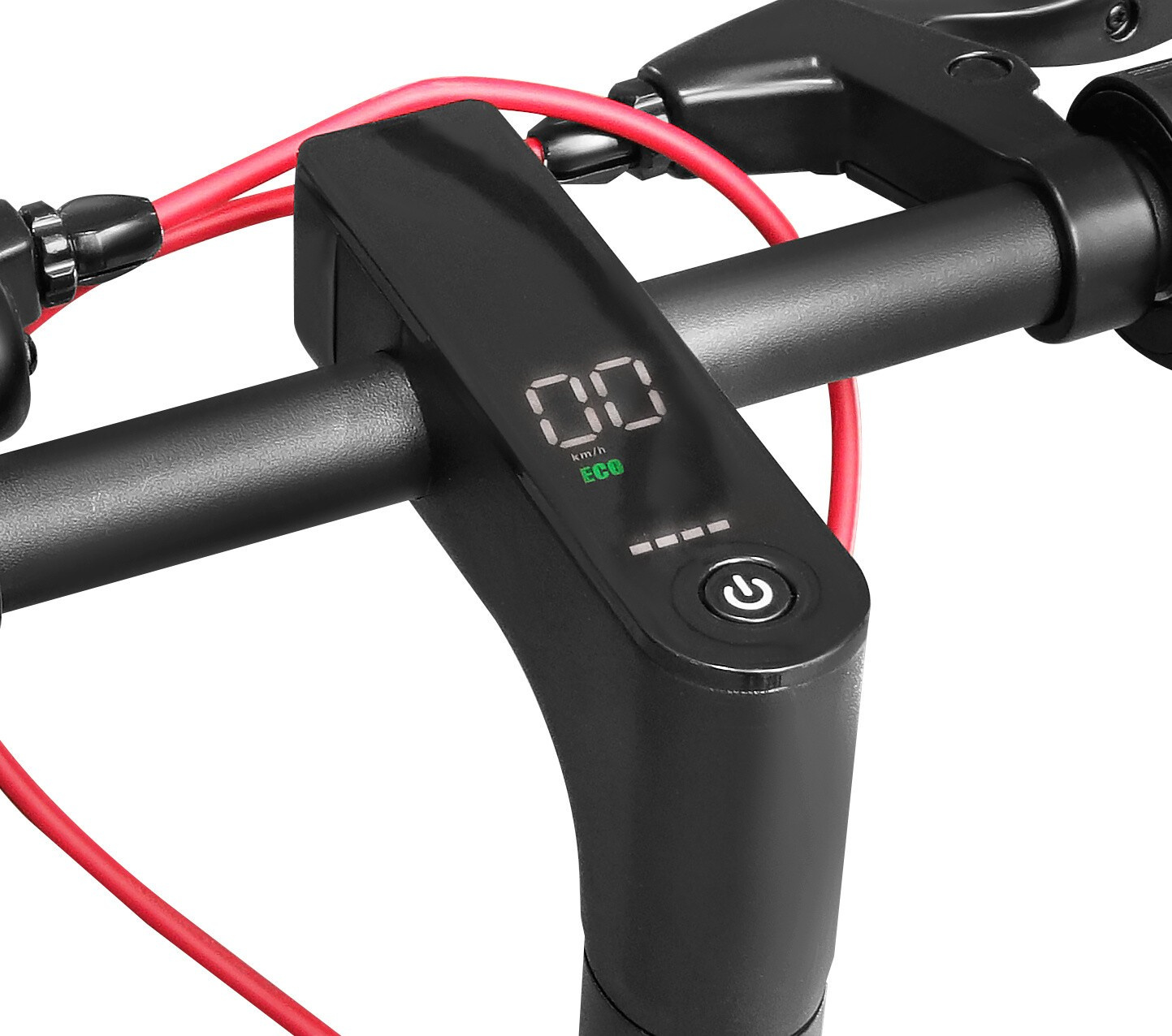 Barevný LCD displej zobrazuje rychlost, stav baterie, jízdní režim, osvětlení i stav připojení k telefonu.