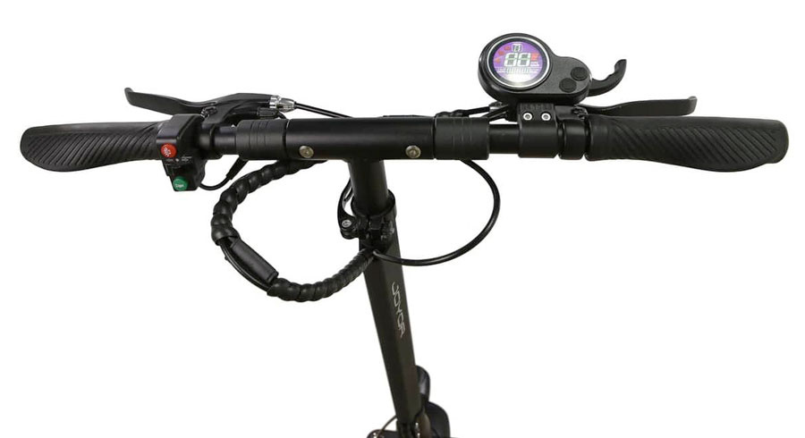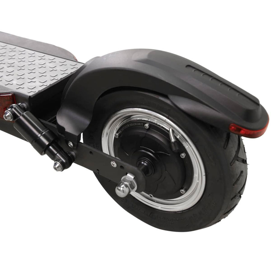 500 W motor poskytuje dostatečný výkon pro jezdce do 100 kg, kdy koloběžka svižně reaguje a dobře si poradí i s prudším kopcem. Na rovině pojedete rychlostí až 35 km/h.