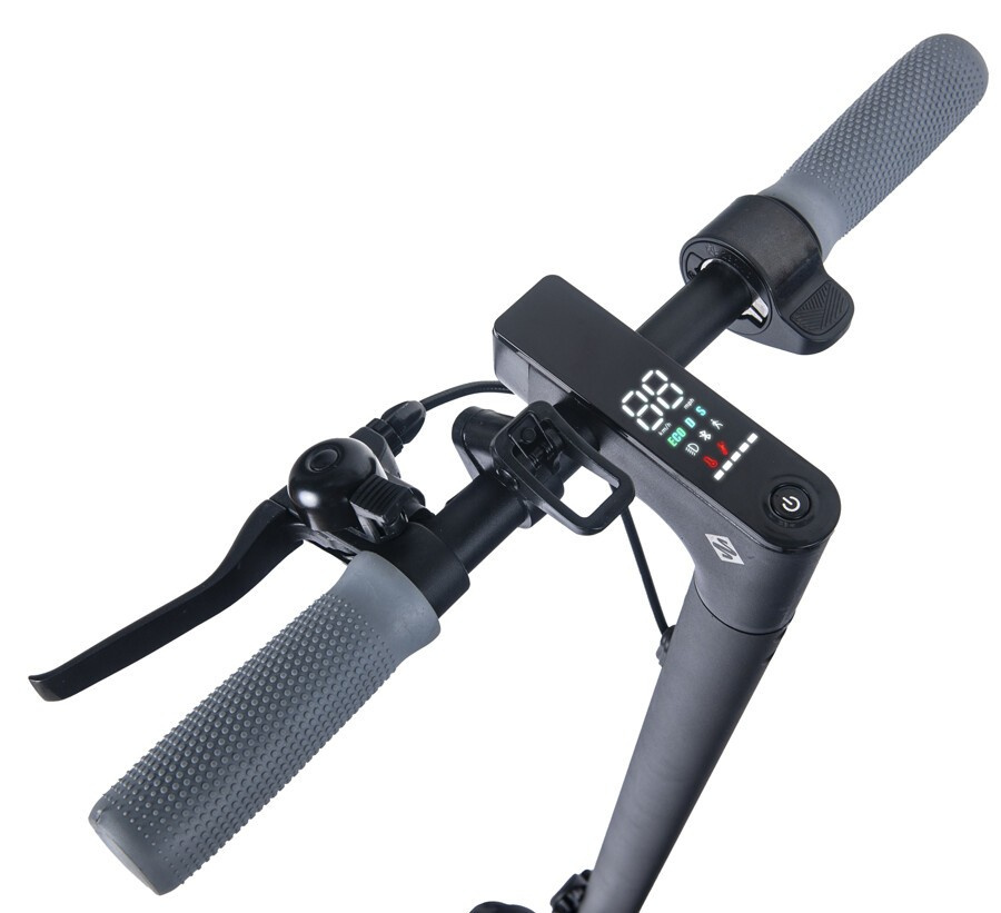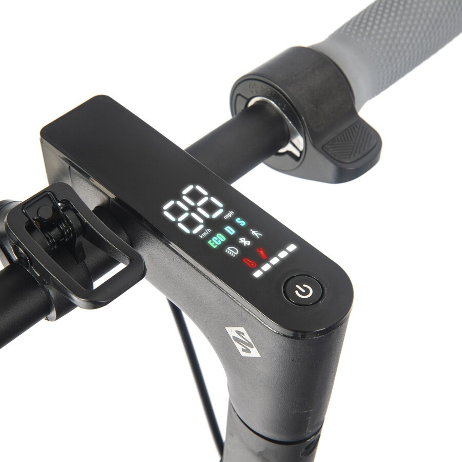 Na integrovaném LCD displeji můžete sledovat základní informace o koloběžce jako je aktuální rychlost, stav baterie, indikaci připojení přes bluetooth k mobilnímu telefonu, jízdní režim v jakém se koloběžka nachází a indikaci osvětlení. Tlačítkem na horní straně displeje můžete přepínat mezi 2 jízdními režimy pro omezení max. rychlosti a zapínat osvětlení.