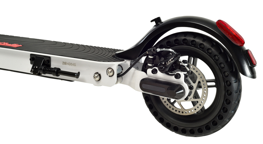 Rám koloběžky vyrobený ze slitiny leteckého hliníku a magnesia snese zatížení až 120 kg. Splňuje tak přísné bezpečnostní normy. Z důvodu bezpečnosti je doporučený věk pro používání koloběžky od 14 let.