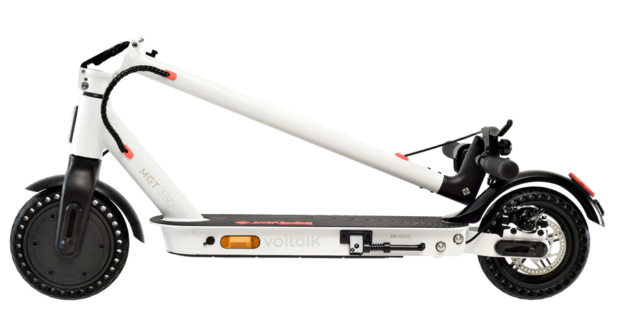 Elektrická koloběžka Voltaik vás úsporně dopraví do práce, do školy, po městě či na výlet. Obě 8,5" ANTI DEFEKT kola vás vždy dovezou do cíle bez rizika defektu. Zadní kolo je navíc vybavené dvojitým odpružením a koloběžka Vás tak pohodlně přenese i přes drobné nerovnosti. Díky důmyslnému skládacímu mechanizmemu jí složíte či rozložíte do 2 vteřin a při délce složeného rámu 110 cm a hmotnosti 14 kg jí snadno převezete autem, vlakem, MHD nebo uskladníte doma či v garáži.
