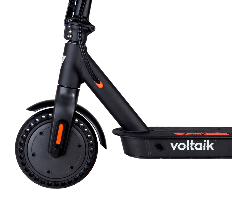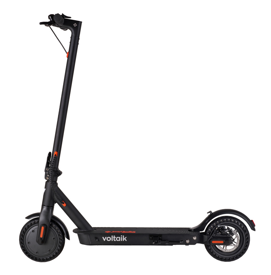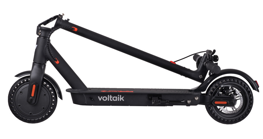 Elektrická koloběžka Voltaik vás úsporně dopraví do práce, do školy, po městě či na výlet. Obě 8,5" plná odpružená kola vás vždy dovezou do cíle bez rizika defektu. Zadní kolo je navíc vybavené dvojitým odpružením a koloběžka Vás tak pohodlně přenese i přes drobné nerovnosti. Díky důmyslnému skládacímu mechanizmemu jí složíte či rozložíte do 2 vteřin a při délce složeného rámu 110 cm a hmotnosti 14 kg jí snadno převezete autem, vlakem, MHD nebo uskladníte doma či v garáži.