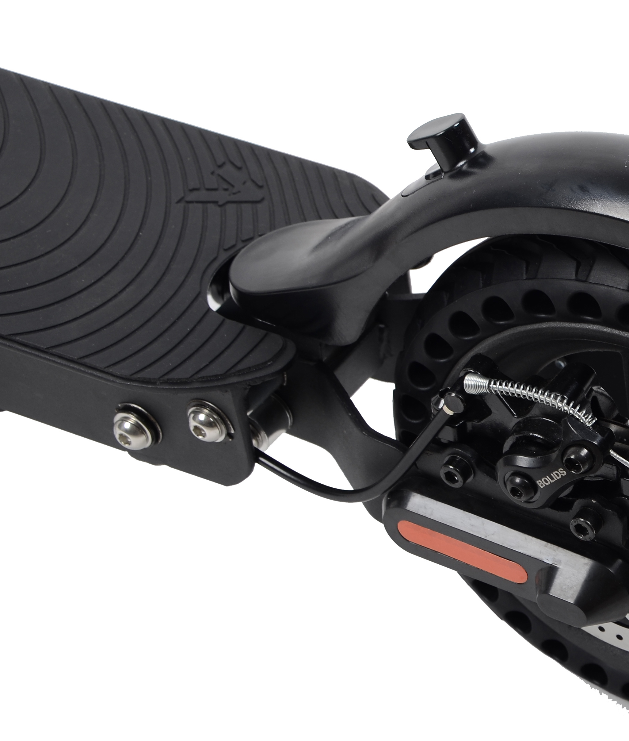 Rám koloběžky vyrobený ze slitiny leteckého hliníku a magnesia snese zatížení až 120 kg. Splňuje tak přísné bezpečnostní normy. Z důvodu bezpečnosti je doporučený věk pro používání koloběžky od 14 let.