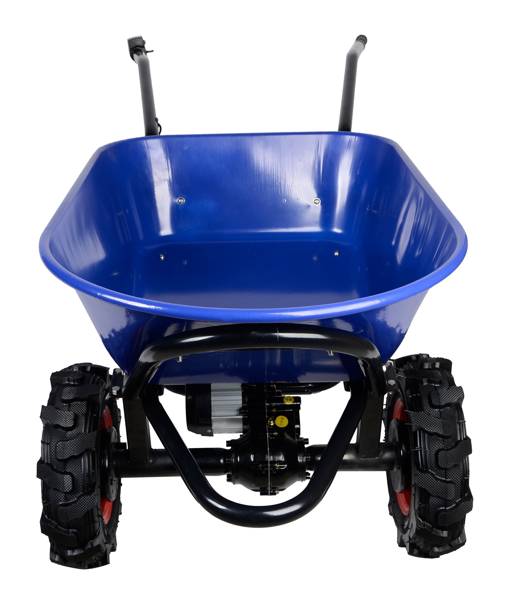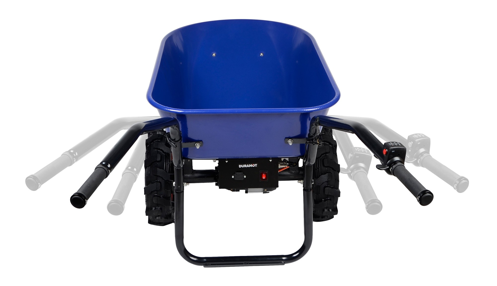 Robustní 500W motor s převodovkou a diferenciálem si hravě poradí s nerovným terénem, svahy i těžkými náklady. Těžiště nákladu je umístěno ideálně nad osou kol – obsluha tak téměř nic nenese, kolečko jede samo.