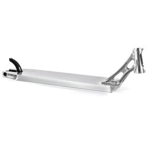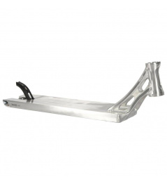 Hmotnost Ethic Erawan V2 desky je totální nesmysl, je to pouhých 1335 gramů! Této váhy se dosáhlo díky tomu že je deska vyráběna z kvalitního a zároveň lehkého hliníku. Deska má rozměry 540 mm na délku, 120 mm na šířku a 360 mm jako footspace. Krk desky je svařovaný ze dvou dílů a je dělaný pro integrované hlavové složení. Deska má konkávnost, takže vám z ní jen tak nesjedou nohy. Do desky se vejdou kolečka o maximálních rozměrech 120x24 mm. Na konci desky je bezpružinková flex fender brzda z kvalitního plastu.