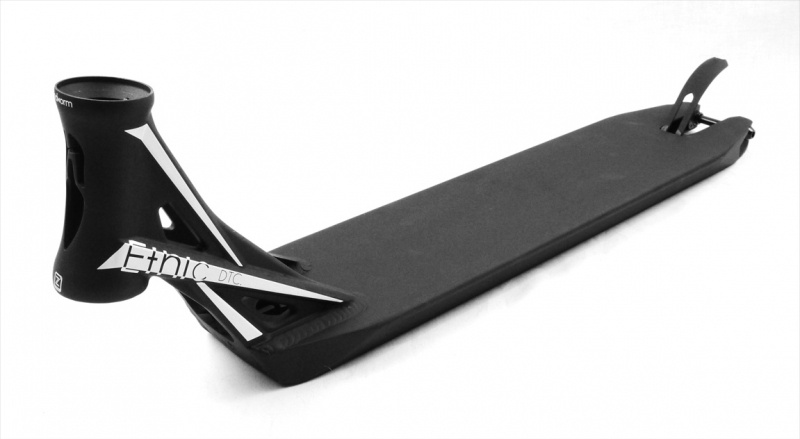 Co takhle pořádnou parkovou, lehkou desku? Ano? Tato deska je právě pro vás! Výborná parková deska od legendární značky Ethic. Krk desky je z jednoho kusu (pevnější), odlehčený. Hlavní výhodou teto desky je, že do desky vlezou jak 24 tak i 30 mm kolečka. Můžete také používat jak standardní velikost osičky M8 tak i M12 (12STD). Tyto osičky a spacary jsou v balení desky.