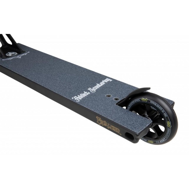Chceš pořádnou street koloběžku? Máme pro tebe řešení! Nová a ještě lepší Addict Equalizer 2.0 nás příjemně překvapila. Koloběžka je určena pro pokročilé jezdce na street. Celková hmotnost koloběžky je 4530 gramů. Kompresní systém koloběžky je HIC. Na koloběžce jsou ocelová řidítka s rozměry 680 x 605 mm. Deska je vyráběná z kvalitního hliníku s rozměry 570 mm na délku a 146 mm na šířku. Vidlice Addict Switchblade je hliníková a jednodílná. Na řidítkách je dvoušroubová M8 objímka. V desce je integrované hlavové složení. Koloběžka je osazena 110 x 24 mm kolečky s hlínkovým středem. Ložiska v kolečkách jsou Eagle Supply 608 2RS.