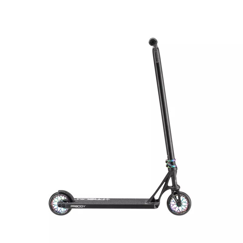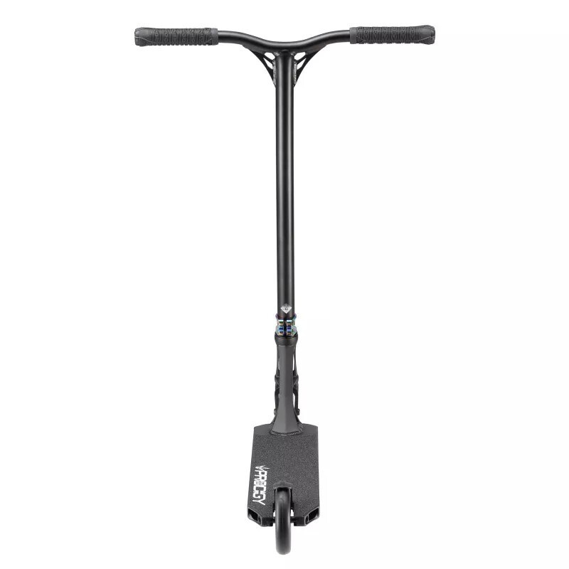 Nová a ještě lepší Blunt Prodigy X se dostala konečně i k nám! Koloběžka je určena pro pokročilejší jezdce do skateparku. Hmotnost celé koloběžky je pouhých 3,2 kg. Na koloběžku je nasazená nová a lehčí deska s délkou 495 mm a šířkou 127 mm. Kvůli udržení nízké hmotnosti celé koloběžky byly zvoleny hliníková řidítka s rozměry 620 x 560 mm. Vidlice Blunt Diamond je z hliníku a je na kompresní systém IHC. Na koloběžce jsou osazeny 120 mm kolečka o šířce 26 mm s ABEC 9 ložisky.