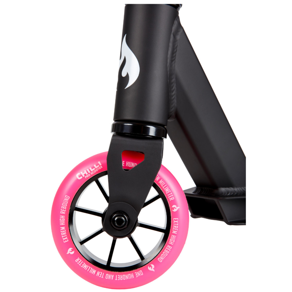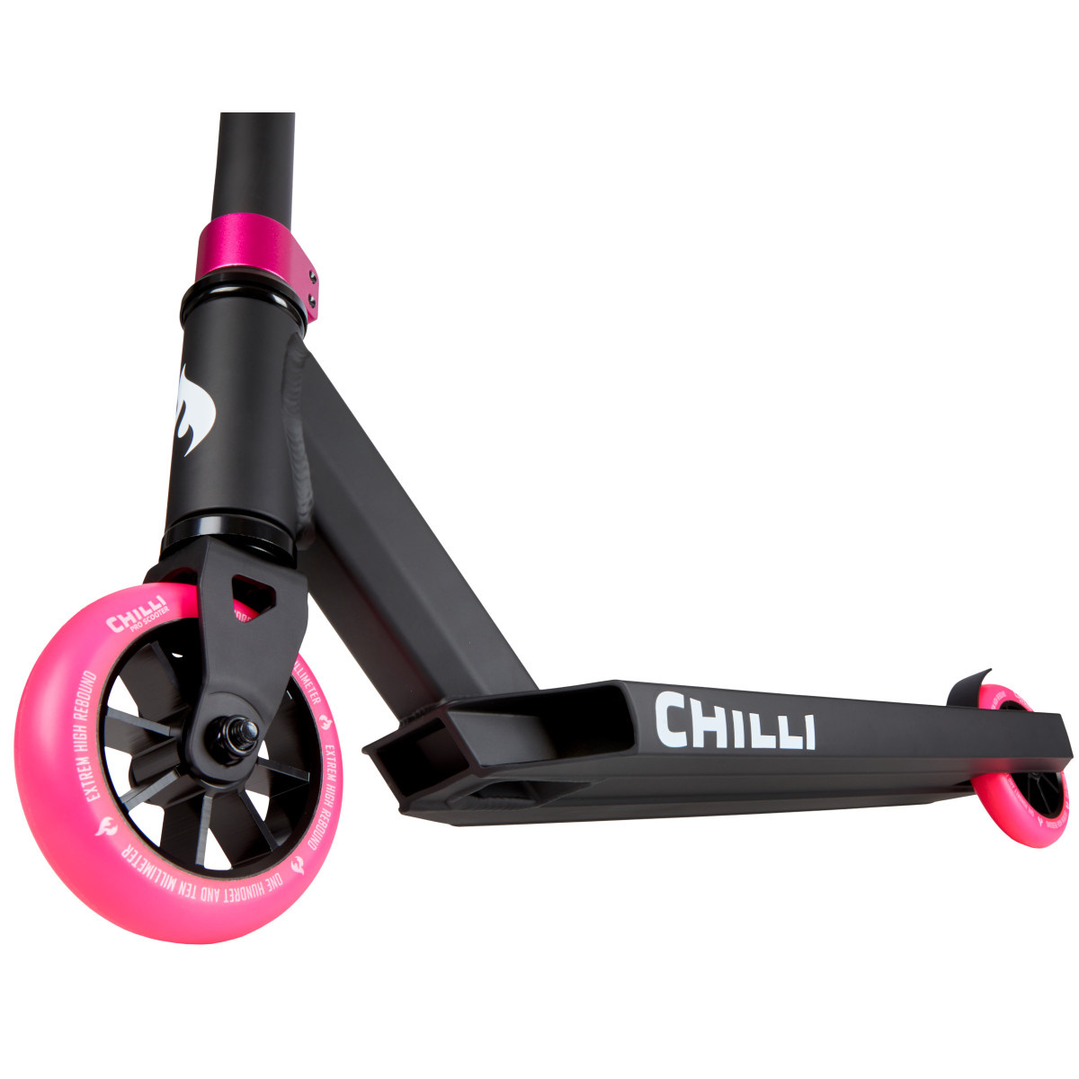 Výborná freestyle koloběžka pro záčátečníky nebo mladé mírně pokročilé jezdce. Koloběžka vychází z nejprodávanějšího modelu Chilli Reaper, kde si odnesla jen to nejlepší! Jedinou vyjímkou je ocelová vidlice a neintegrovaný headset.