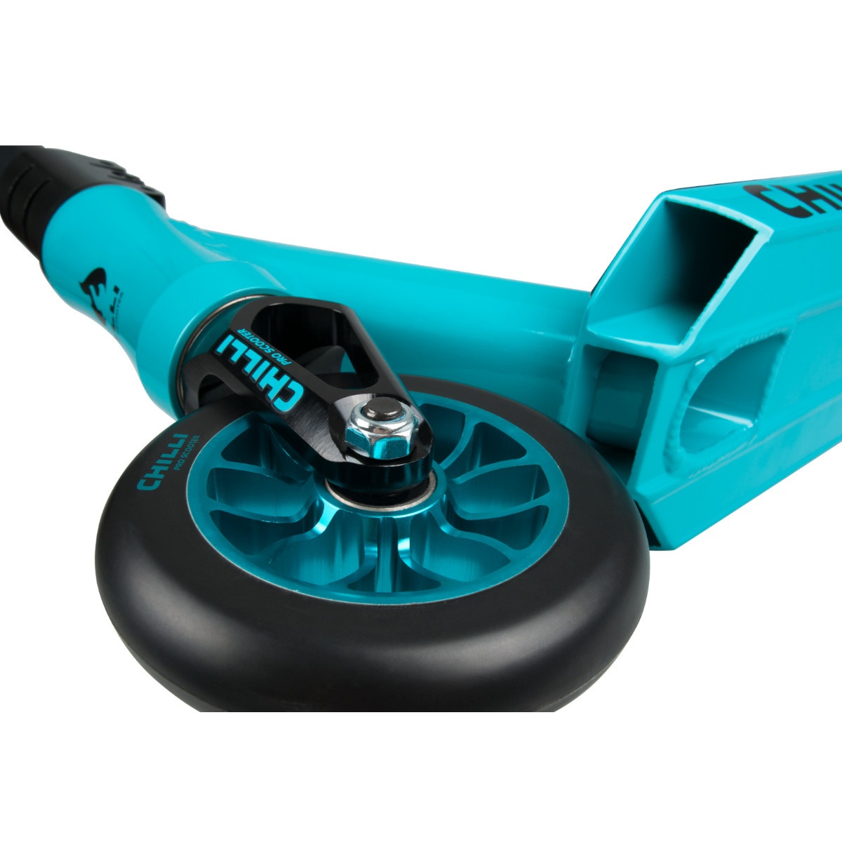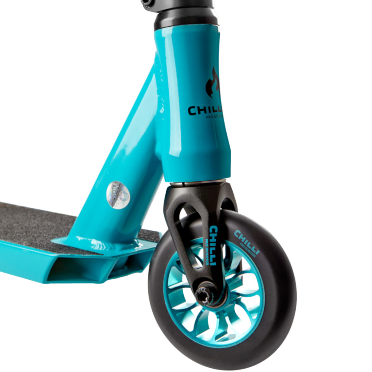 Skvělá freestyle koloběžka pro starší začátečníky i mírně pokročilé jezdce. Nejprodávanější koloběžku u nás! Chcete lepší koloběžku za skvělé peníze? Chilli Reaper modely freestyle koloběžek jsou práve pro vás! Skvělá hmotnost, skvělé rozměry a hlavně kvaltiní komponenty. Jako například: SpiderHIC bezzávitová, jednodílná, hliníková vidlice. Integrovaný headset s kvaltiními ložisky. 110 mm kolečka s hliníkovým středem, ABEC 9 ložiska atd.