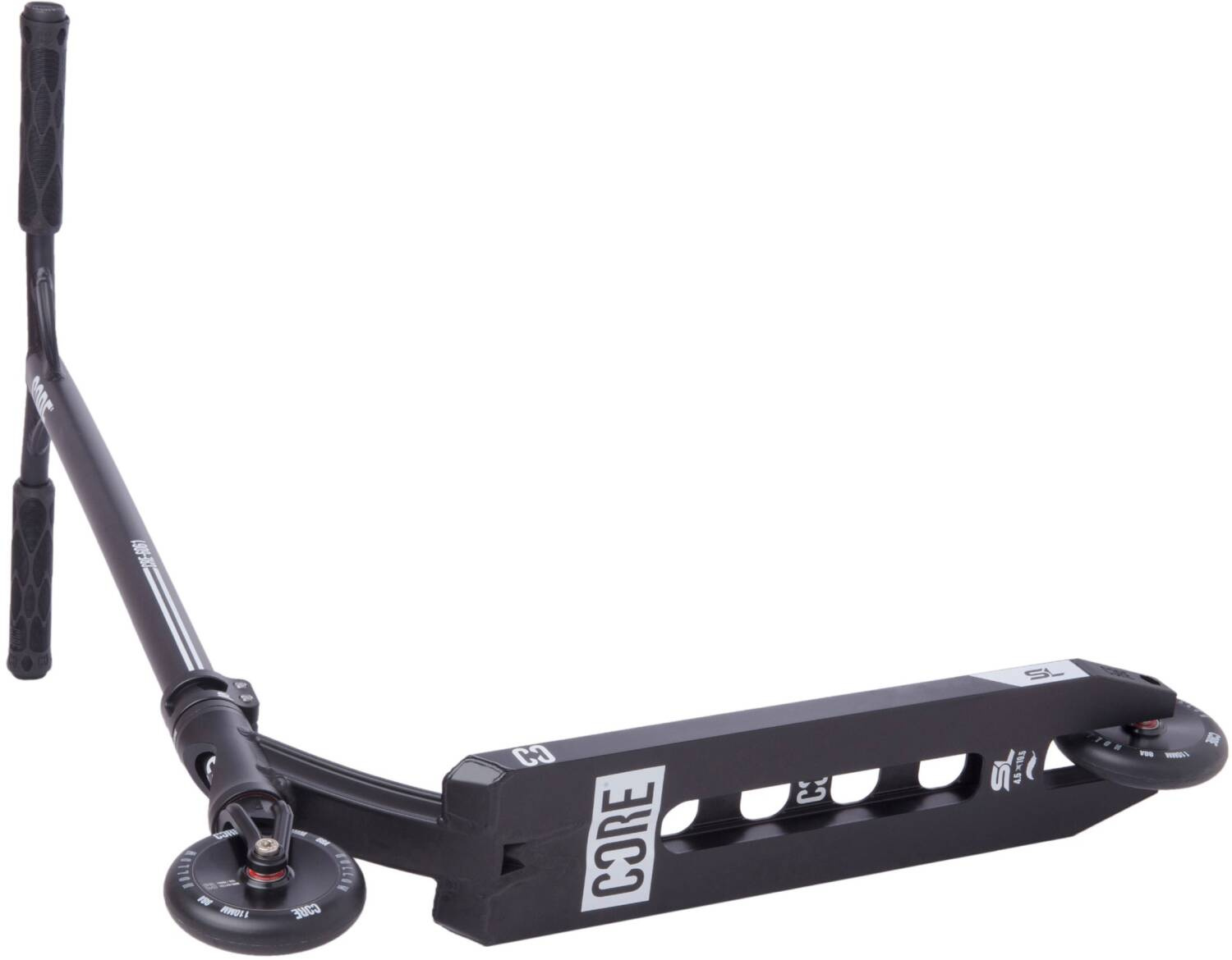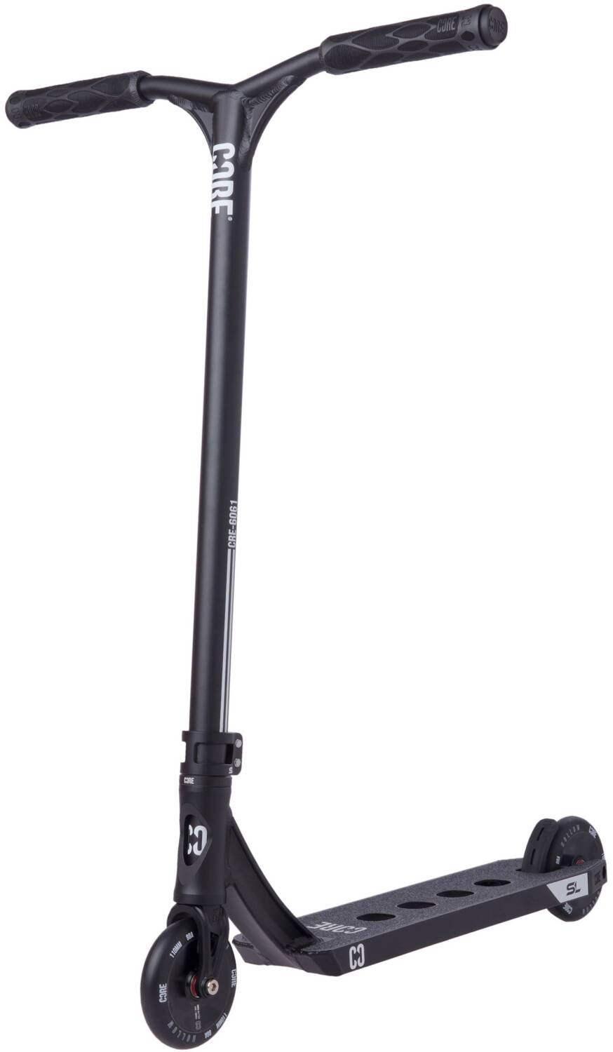 Super koloběžka od značky CORE dělaná přímo do skateparku. Koloběžka váží pouhých 3200 gramů a to díky spoustě odlehčení, které jsou udělané na desce. Deska má rozměry 495 mm na délku, 114 mm na šířku a 345 mm na footspace. Na koloběžce jsou hliníková Y řidítka s rozměry 620 x 540 mm. Na koloběžce je zvolený IHC kompresní systém, který se bere jako nejlehčí. V jednodílné hliníkové vidlici nalezneme 110 mm kolečka s hliníkovým středem a ABEC 9 ložisky