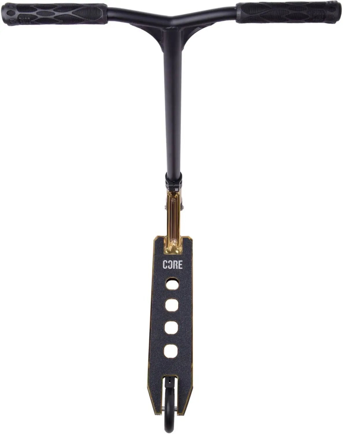 Super koloběžka od značky CORE dělaná přímo do skateparku. Koloběžka váží pouhých 3200 gramů a to díky spoustě odlehčení, které jsou udělané na desce. Deska má rozměry 495 mm na délku, 114 mm na šířku a 345 mm na footspace. Na koloběžce jsou hliníková Y řidítka s rozměry 620 x 540 mm. Na koloběžce je zvolený IHC kompresní systém, který se bere jako nejlehčí. V jednodílné hliníkové vidlici nalezneme 110 mm kolečka s hliníkovým středem a ABEC 9 ložisky.
