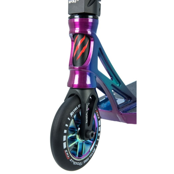 Výborná, limitovaná koloběžka poskládaná přímo od Bestial Wolf. Hlavní výhodou je celková délka koloběžky. Ta má 930mm! Výborná pro dlouhé jezdce. Lehká a obratná deska je výborná do skateparku. Velikost koleček 120mm s hliníkovým středem. Jízda je rychlejší a stabilnější. Určitě doporučujeme všem náročnějším jezdcům, kteří hledají kvalitní custom koloběžku. Vhodná do skateparku.