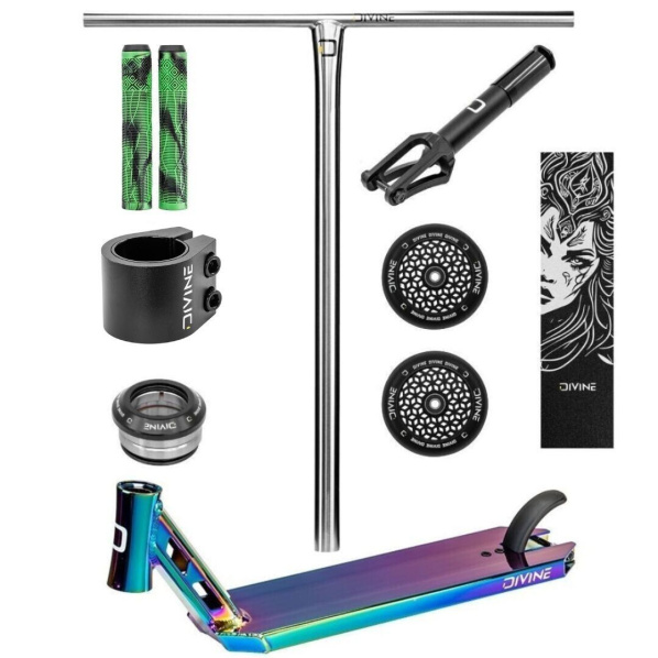 Hledáš koloběžku, která tě nezklame ve skateparku!? Tahle custom sestava z prémiových dílů Divine je postavená přesně pro tebe. Lehká, pevná a připravená na ostré triky i tvrdé dopady. Každý komponent byl vybrán pro maximální výkon a styl. D9ky titanovým řídítkům je koloběžka lehčí. Skvělá cena tě také potěší!
