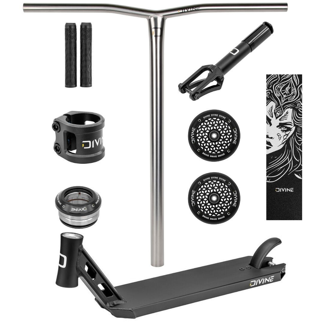 Hledáš koloběžku, která tě nezklame ve skateparku!? Tahle custom sestava z prémiových dílů Divine je postavená přesně pro tebe. Lehká, pevná a připravená na ostré triky i tvrdé dopady. Každý komponent byl vybrán pro maximální výkon a styl. D9ky titanovým řídítkům je koloběžka lehčí. Skvělá cena tě také potěší!