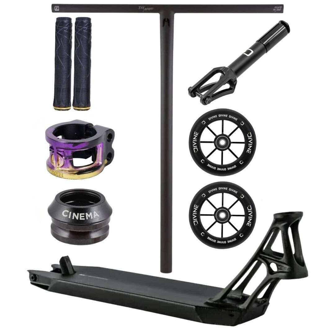 Tahle custom freestyle koloběžka kombinuje špičkové díly Divine a Ethic pro maximální lehkost a odolnost. Parková deska Ethic Pandemonium V2 500 mm společně s ocelovými řídítky Union 620 mm a rychlými kolečky Divine Spoked 110 mm zaručí perfektní kontrolu, svižné whipy a stabilní dopady.