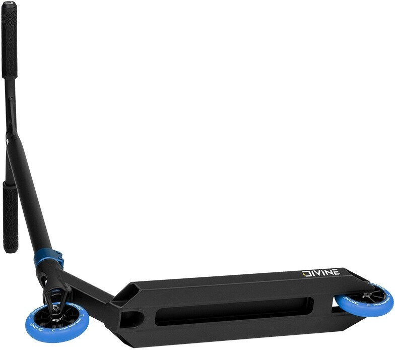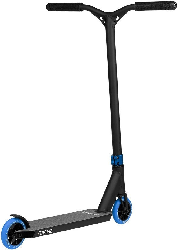 Divine Apollon je freestyle koloběžka určená pro mírně pokročilé/pokročilejší jezdce s výškou mezi 140 - 170 cm, pro které je skatepark něco jako druhý domov. Koloběžka je celo hliníková a díky tomu váží pouhých 3,2 kg. Na koloběžce jsou nasazená hliníková řidítka s Y-tvarem, díky čemuž jsou řidítka pevnější a mají hlavně měkké gripy. Řidítka stahuje dvou šroubová objímka, která krásně sedí na jednodílnou hliníkovou vidlicí. Koloběžka se krásně a hlavně potichu točí díky průmyslovým ložiskům, která jsou integrovaná v krku desky. Deska je opravdu lehká a překvapí vás svými rozměry. Na konci desky je plastová nášlapná brzda. Na koloběžce je nasazený pár 110 mm spoked koleček s hliníkovými středy.