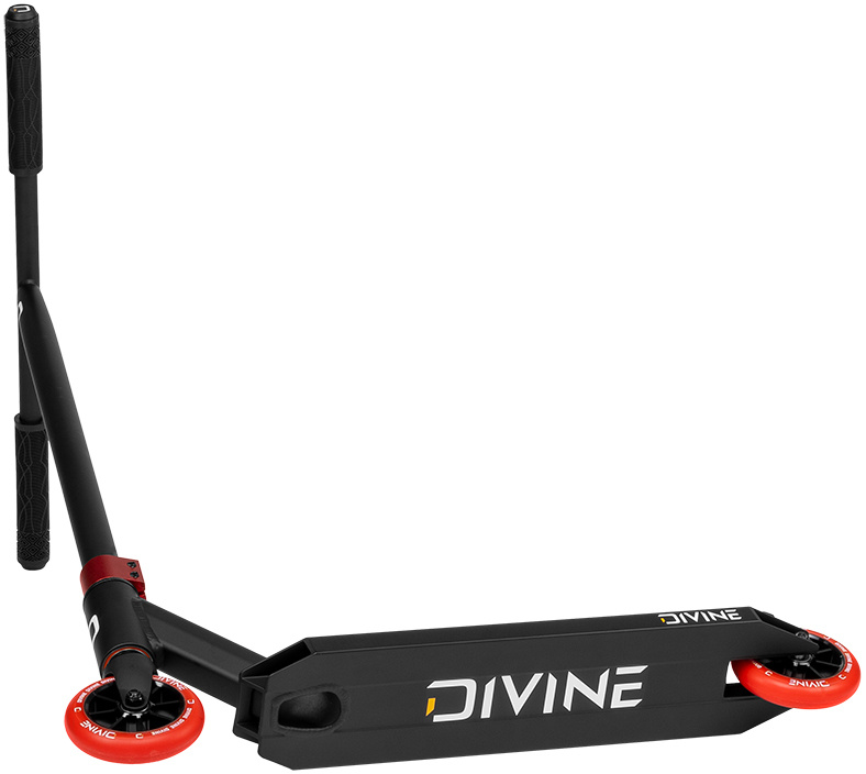 Měříš něco mezi 130-160 cm a chceš začít jezdit na freestyle koloběžce? Divine Godie je přesně to "pravý sametový"! Koloběžka je vyráběná z prémiového hliníku a oceli a díky tomu váží pouze 3,7 kg. Na koloběžce jsou nasazená "téčková" řidítka, díky zvolené oceli jsou řidítka pevnější a mají hlavně příjemně měkké gripy. Řidítka objímá dvou šroubovou objímku, která krásně pasuje na jednodílnou ocelovou vidlicíLadný a tichý chod zajišťují průmyslová ložiska, která jsou integrovaná v krku desky. Deska je skvěle zpracovaná a vyvážená díky čemuž s ní můžete jezdit jak ve skateparku tak i na ulici. Plastová brzda více vydrží a lépe se mačká. Koloběžka je osazena párem 110 mm spoked koleček s hliníkovými středy
