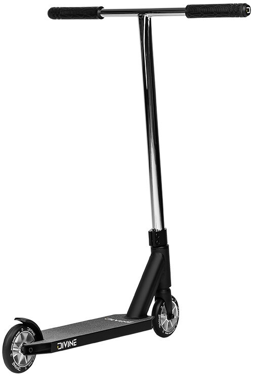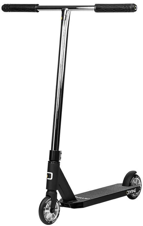 Měříš něco mezi 130-160 cm a chceš začít jezdit na freestyle koloběžce? Divine Godie je přesně to "pravý sametový"! Koloběžka je vyráběná z prémiového hliníku a oceli a díky tomu váží pouze 3,7 kg. Na koloběžce jsou nasazená "téčková" řidítka, díky zvolené oceli jsou řidítka pevnější a mají hlavně příjemně měkké gripy. Řidítka objímá dvou šroubovou objímku, která krásně pasuje na jednodílnou ocelovou vidlicí. Ladný a tichý chod zajišťují průmyslová ložiska, která jsou integrovaná v krku desky. Deska je skvěle zpracovaná a vyvážená díky čemuž s ní můžete jezdit jak ve skateparku tak i na ulici. Plastová brzda více vydrží a lépe se mačká. Koloběžka je osazena párem 110 mm spoked koleček s hliníkovými středy.