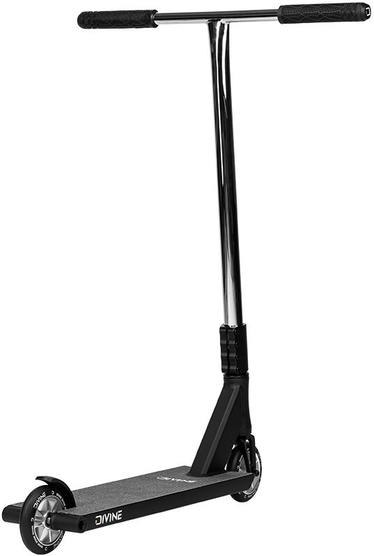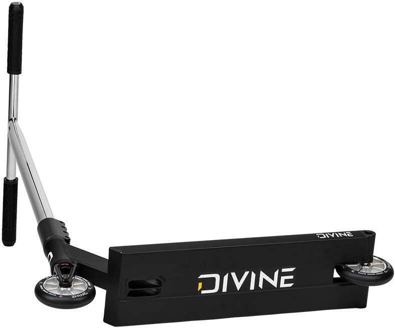 Divine Nyx je freestyle koloběžka určená pro mírně pokročilé/pokročilejší jezdce s výškou mezi 150 - 175 cm, kteří se chtějí zlepšovat hlavně v ježdění na ulici. Celá koloběžka váží 4,1 kg, což je vůči rozměrům skvělý poměr. Na koloběžce jsou nasazená ocelová řidítka s T-tvarem a měkkými gripy. Řidítka svírá čtyř šroubové SCS, která s jednodílnou hliníkovou vidlicí drží celou koloběžku pohromadě a zajišťuje tichý chod koloběžky. Koloběžka se krásně točí díky průmyslovým ložiskům, která jsou osazená v krku desky. Deska je skvělá svými rozměry, footspacem, hranatým koncem desky a plastovou nášlapnou brzdou. Na koloběžce je nasazený pár 110 mm koleček s hliníkovými středy.