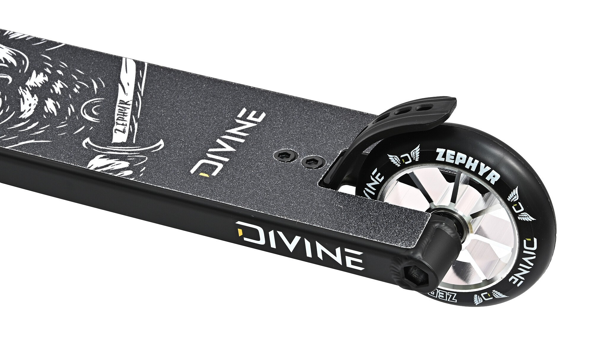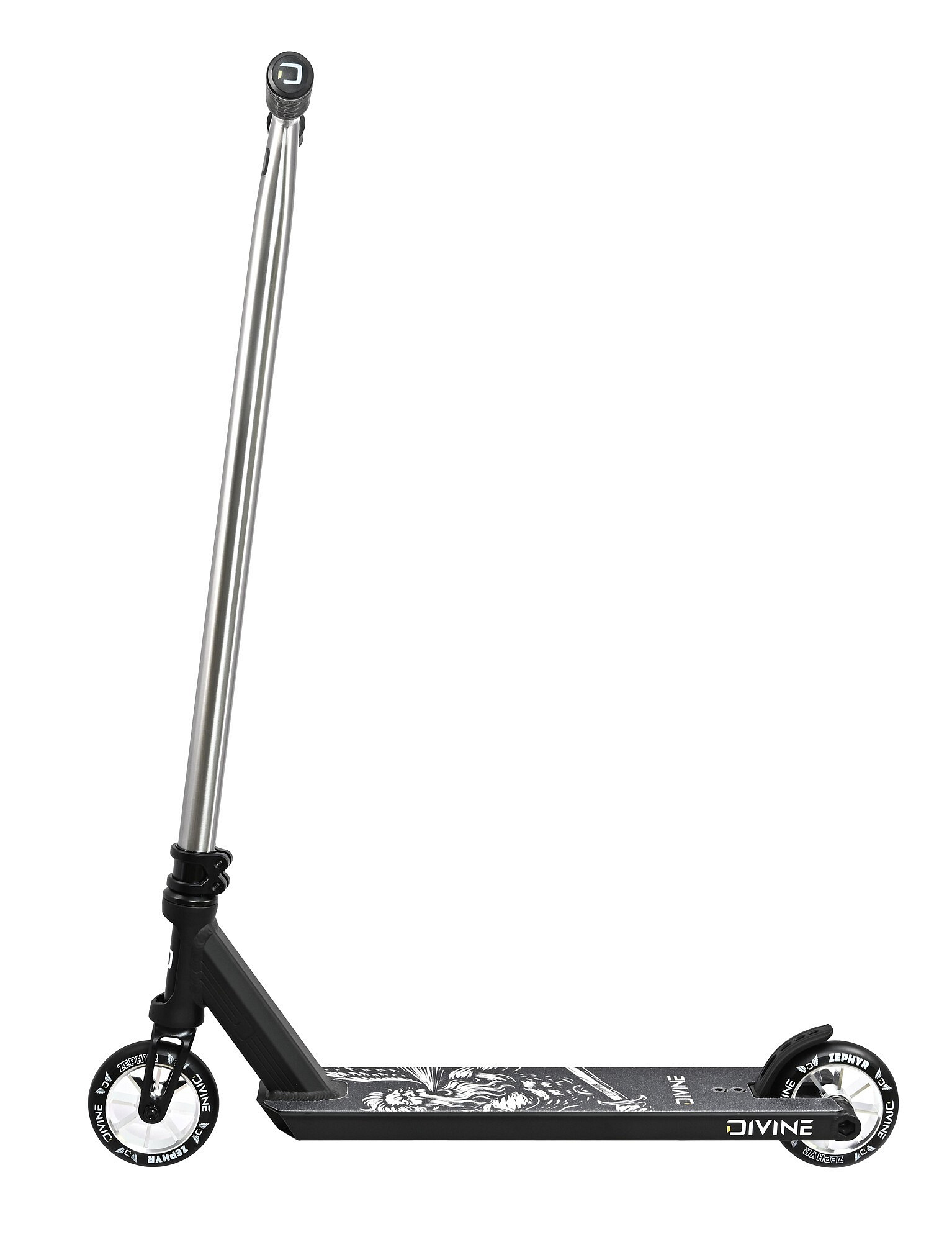 Divine Zephyr L Hybrid váží pouze 2970 g, což je na hybridní freestyle koloběžku s hranatým zakončením desky naprosto výjimečná hodnota. Nabízí perfektní kombinaci nízké váhy, pevnosti a praktičtějšího hybridního tvaru pro ridery, kteří chtějí lehký komplet, ale zároveň preferují hranatější zadní část desky.