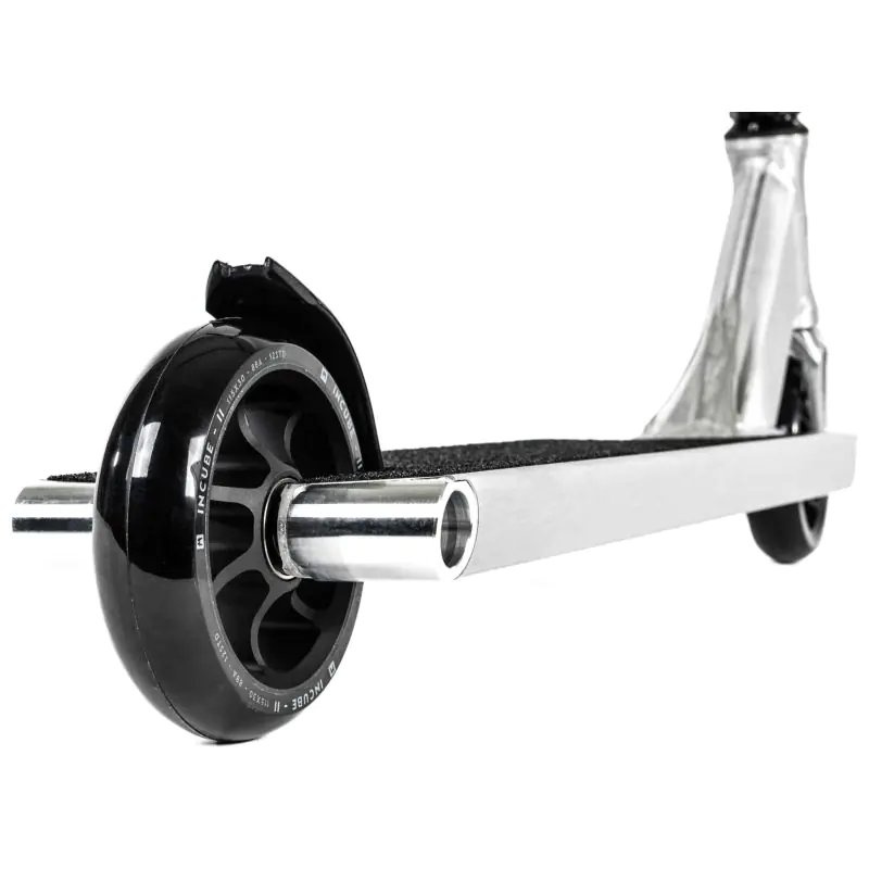 Ethic Pandora je koloběžka určena pro mírně pokročilé jezdce, kteří se chtějí naučit základy streetu i skateparku. Koloběžka je vyráběna tak aby vydržela úporné streetové ježdění ale zároveň tak aby byla co nejlehčí do skateparku. Hmotnost koloběžky je pouhých 3,45kg. Na koloběžce jsou ocelová Téčková řidítka s rozměry 670x570 mm.Na řidítkách jsou nasunuty nové Ethic Slim gripy. Deska koloběžky je univerzální hybrid mezi skateparkovým a streetovým ježděním a to právě díky Box-endovému konci. Rozměry desky jsou 560 mm na délku, 130 mm na šířku a 390 mm na footspace. Materiál desky je hliník 6061 se stupněm pevnosti T6. Celá koloběžka drží pohromadě díky jednodílné hliníkové vidlici a HIC kompresnímu systému. Koloběžka je osazena párem 12STD koleček s rozměrem 115x30 mm s hliníkovými středy. Na konci koloběžky naleznete flex fender plastovou brzdu.