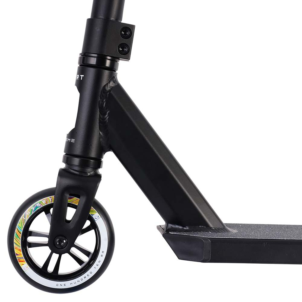 Výborná koloběžka pro starší začátečníky se skvělým designem. Skvělá pro naučení triků. Kolečka jsou 110mm s hliníkovým středem, bez závitová vidlice, super řídítka ve tvaru T. Co více si přát?