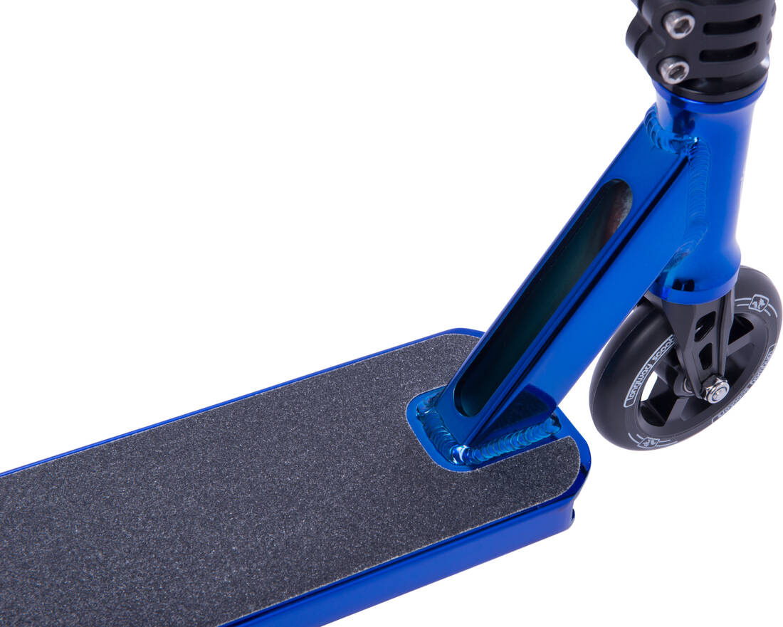Výborná koloběžka pro mírně pokročílé jezdce. Hlavní výhodou této koloběžky je, že je celá z hlínků. Tim pádem je o dost lehčí. Koloběžka má 110mm kolečka s hliníkovým středem, integorvaný headset a mnoho dalšího. Výborná do skateparku.