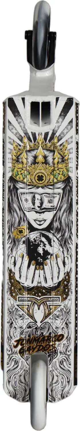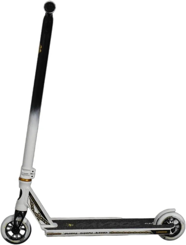 Jon Marco Gaydos je profi jezdec a spojil se s značkou Lucky a vytvořili svoji další signature koloběžku. Lucky Pro Scooters je americká značka koloběžek a příslušenství od roku 2009. Pro rok 2022 si Lucky připravilo spoustu novinek a mezi to patří i nové Prospect koloběžky. Model Prospect je určen pro mírně pokročilé i pokročilé jezdce do skateparku. Celková hmotnost koloběžky je 3100 gramů a to díky tomu že většina koloběžky je hliníková. Na koloběžce jsou hliníková Y řidítka, která měří 622 x 597 mm. Deska byla vytvořena jezdci do skateparku, tudíž má Peg-cut a super rozměry (Délka 500 mm, Šířka 120 mm a Footspace 360 mm). V desce je bezzávitová, jednodílná, hliníková vidlice. Na vidlici je nasazen IHC shim, díky kterému drží koloběžka v jednom kuse. Koloběžka je osazena párem 120 mm koleček o šířce 24 mm. V každém kolečku jsou 2 ABEC9 ložiska, která zajišťují plynulou jízdu. Na konci desky je ocelová flex fender brzda