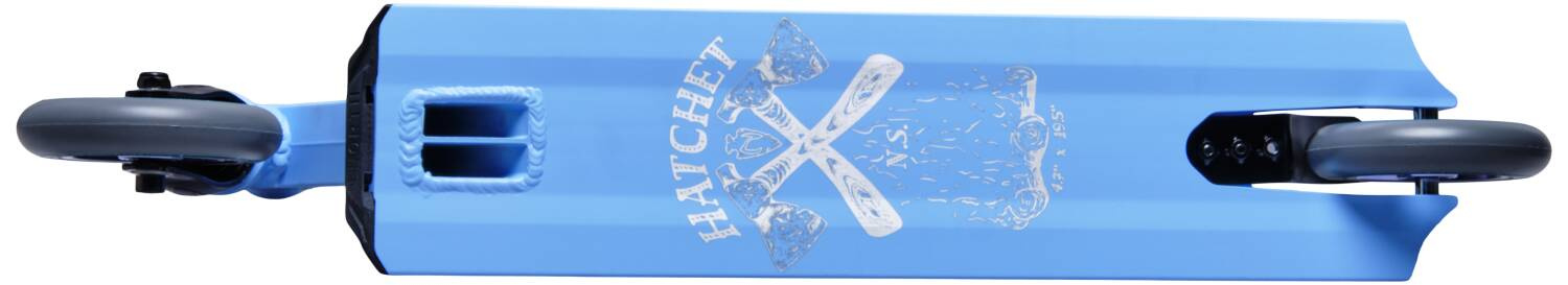 Nový model pro rok 2021. Došlo pouze ke změně designu a tvaru řídítek. Super koloběžka pro menší mírně pokročilé jezdce. North Hatchet má výborné komponenty. Například kvalitní 110mm kolečka s hliníkovým středem, bezzávitovou ocelovou vidlici a průmyslový headset nebo desku s hranatým tvarem. Díky tomu jezdec může zkoušet lehčí street.
