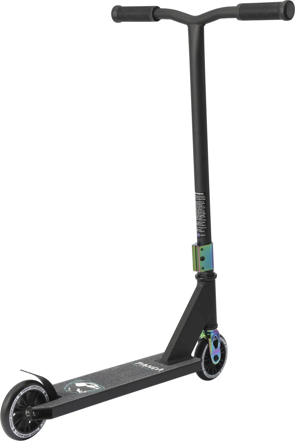 Výborná lehká koloběžka ideální pro začátečníky. Díky T řídítkům z oceli se snadno naučíte triky jako no hand, barspin atd. Lehká deska s obdélníkovým tvarem je super pro naučení základních grind triků. (lépe drží na povrchu překážky). 110mm kolečka mají plastový střed. Vidlice je ocelová se závitovým headsetem. Výborná do skateparku.