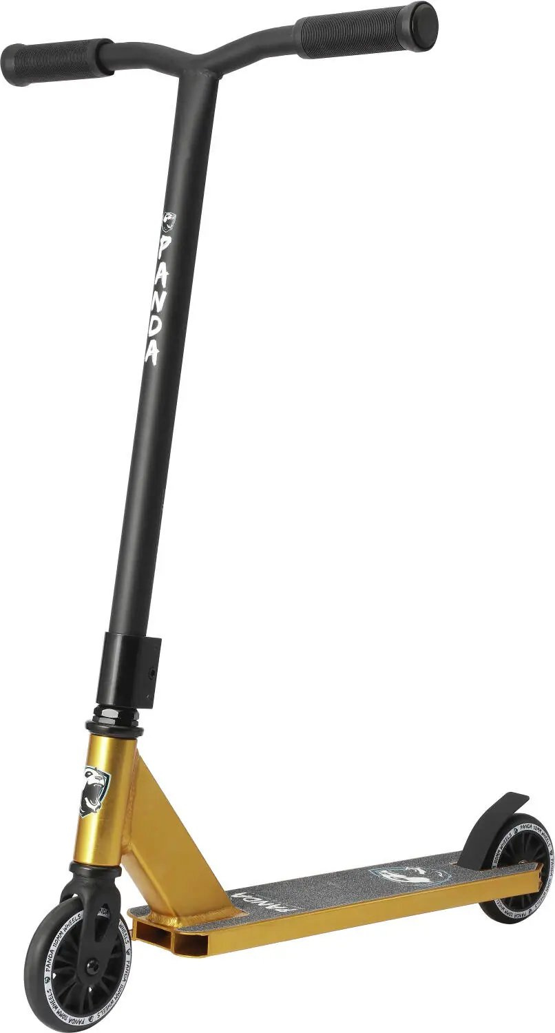 Výborná lehká koloběžka ideální pro začátečníky. Díky T řídítkům z oceli se snadno naučíte triky jako no hand, barspin atd. Lehká deska s obdélníkovým tvarem je super pro naučení základních grind triků. (lépe drží na povrchu překážky). 110mm kolečka mají plastový střed. Vidlice je ocelová se závitovým headsetem. Výborná do skateparku