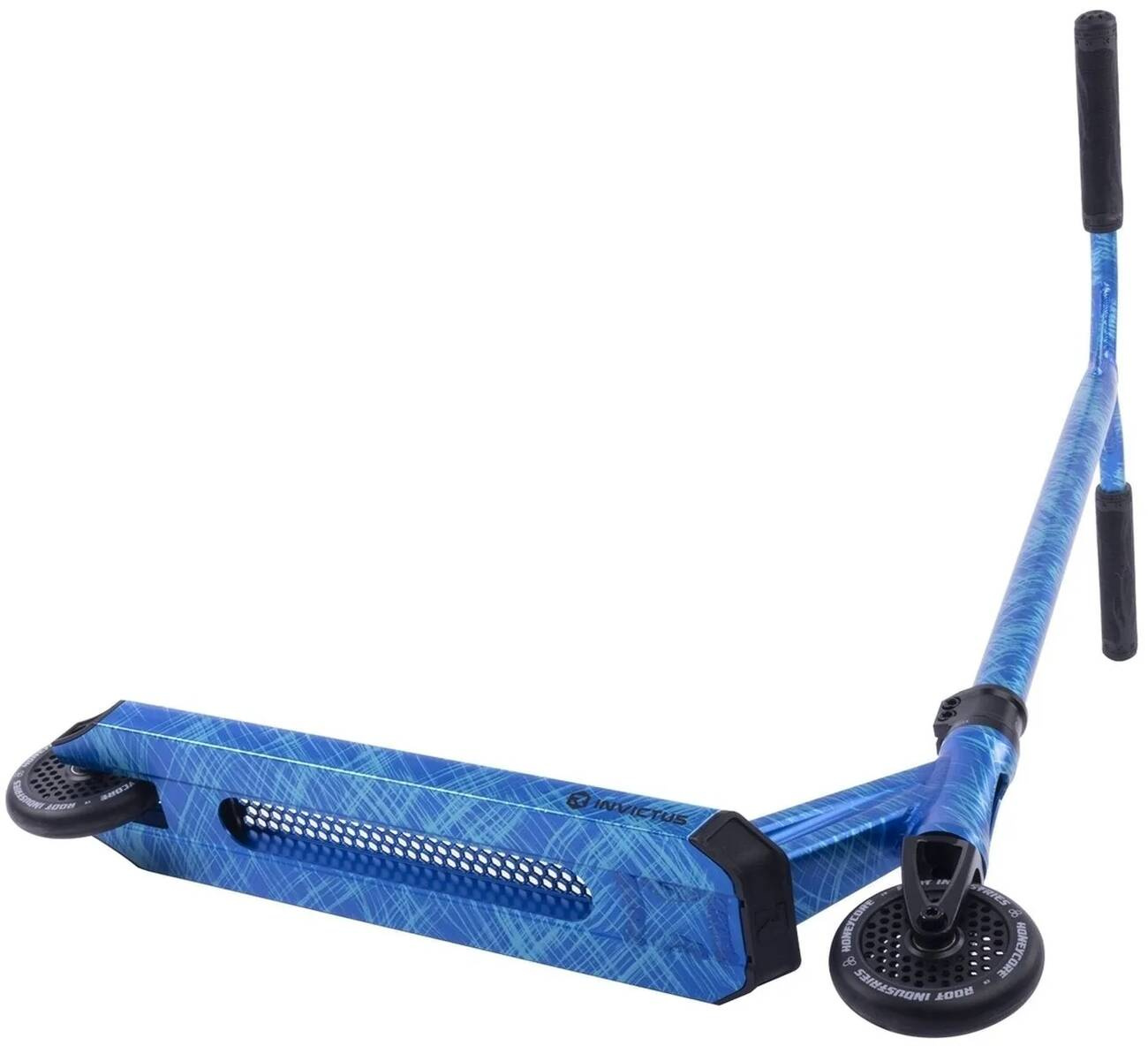 Skvělá koloběžka pro mírně pokročilé jezdce do skateparku od australské značky Root Industries. Invictus 2 ETCH je limitkou a vypadá skvěle. Celková hmotnost koloběžky je pouhých 3352 g. Celková výška koloběžky je 850 mm. Koloběžka vyniká svou odlehčenou hliníkovou deskou. Deska je jednodílná a konec desky je zkosený(takzvaný Peg-cut). V desce jsou udělané díry na odlehčení a zároveň vypadají skvěle designově. Koloběžka má kompresní systém IHC díky čemuž se použili hliníková řidítka ve tvaru Y. Rozměry řidítek jsou 610 mm na výšku a 580 mm na šířku. Na koloběžce je pár známých Root Industries Honeycore 110 mm koleček. A na konci desky je plastová flex fender brzda.