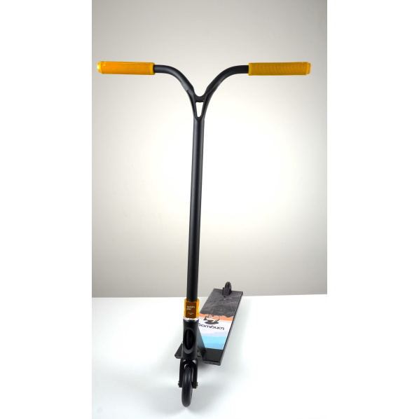 Pořádnej týpek potřebuje pořádnej klacek! Pokud měříš něco mezi 165-195 cm a chceš se zlepšovat ve street ježdění tak tady pro tebe máme tuhle mašinu. Tahle celohliníková koloběžka váží 4,3 kg a to právě kvůli tomu že jí je pořádnej kus. Řidítka jsme zvolili ocelová Ethic Dildegast s rozměry 720x610 mm. Na řidítka jsme hodili North Essentials gripy v barvě gum. Řidítka svírá dvoušroubová Bestial Wolf Squared objímka. Striker Lux vidlici asi nemusíme moc představovat, hliníková, jednodílná vidlice skvěle sloužící s IHC kompresním systémem. Spodek koloběžky vypadá trochu jako lopata ale je to Striker Gravis deska o rozměrech 560 mm na délku a 152 mm na šířku. Na desce je nalepený Longway Gabi V1 griptape. A na finále jsme si nechali naše Scootshop 110 mm kolečka s ABEC9 ložisky.