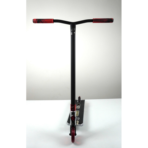 Chceš mít originální koloběžku, kterou krom tebe nikdo nemá a ani mít nebude? Tak tenhle Build Up je dělanej přímo pro tebe! Jelikož je to Build Up, tak je jediný na světě a více kousků nebude. Je to originál za bezkonkurenční cenu! Koloběžka je určena pro mírně pokročilé a pokročilé jezdce na street. Celková hmotnost koloběžky je 4,3 kg. Řidítka jsme zvolili starou dobrou klasiku Bestial Wolf Maverick s rozměry 690x600 mm. Na řidítka jsme hodili mixed gripy od stejného výrobce (Bestial Wolf). Řidítka svírá dvoušroubová Bestial Wolf Squared objímka v perfektní červené barvě. Lancer Pro je hliníková, jednodílná vidlice skvěle sloužící s HIC kompresním systémem. Core ST deska o rozměrech 560 mm na délku a 145 mm na šířku prostě neurazí! Koloběžka je osazena kvalitním párem Chilli koleček s ABEC9 ložisky.