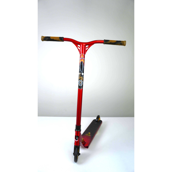 S touhle koloběžkou rozmotáš více tailwhipů než Dakota! Tahle super parková buildup koloběžka je určena pro mírně pokročilé/pokročilejší jezdce, kteří preferují skatepark. Celková hmotnost koloběžky je 3,3 kg díky tomu se dá s koloběžkou lehce manipulovat ve vzduchu. Deska je základ koloběžky a díky proto jsme se rozhodli zvolit Lucky Jon Marco Gaydos V3 desku s rozměry 495 mm na délku, 114 mm na šířku a 345 mm jako footspace. Koloběžka jezdí neuvěřitelnou rychlostí díky páru Fuzion Apollo 110 mm koleček s hliníkovými středy. Přední kolečko je osazeno v jednodílné, hliníkové Bestial Wolf Lancer Pro vidlici. Koloběžka drží pohromadě díky IHC kompresnímu systému a Ethic Valkyria objímce, která je na 2 šrouby. Jako hlavové složení jsme zvolili náš známý Scootshop headset s kvalitními integrovanými ložisky. Blunt Reaper V2 řidítka asi nemusíme představovat, jedná se o jedny z nejznámějších hliníkových řidítek a my jsme je zvolili ve velikosti 650 x 585 mm. Na řidítka jsme jen nahodili Fasen Fast gripy a máme hotovou tuhle parkovou bestii!