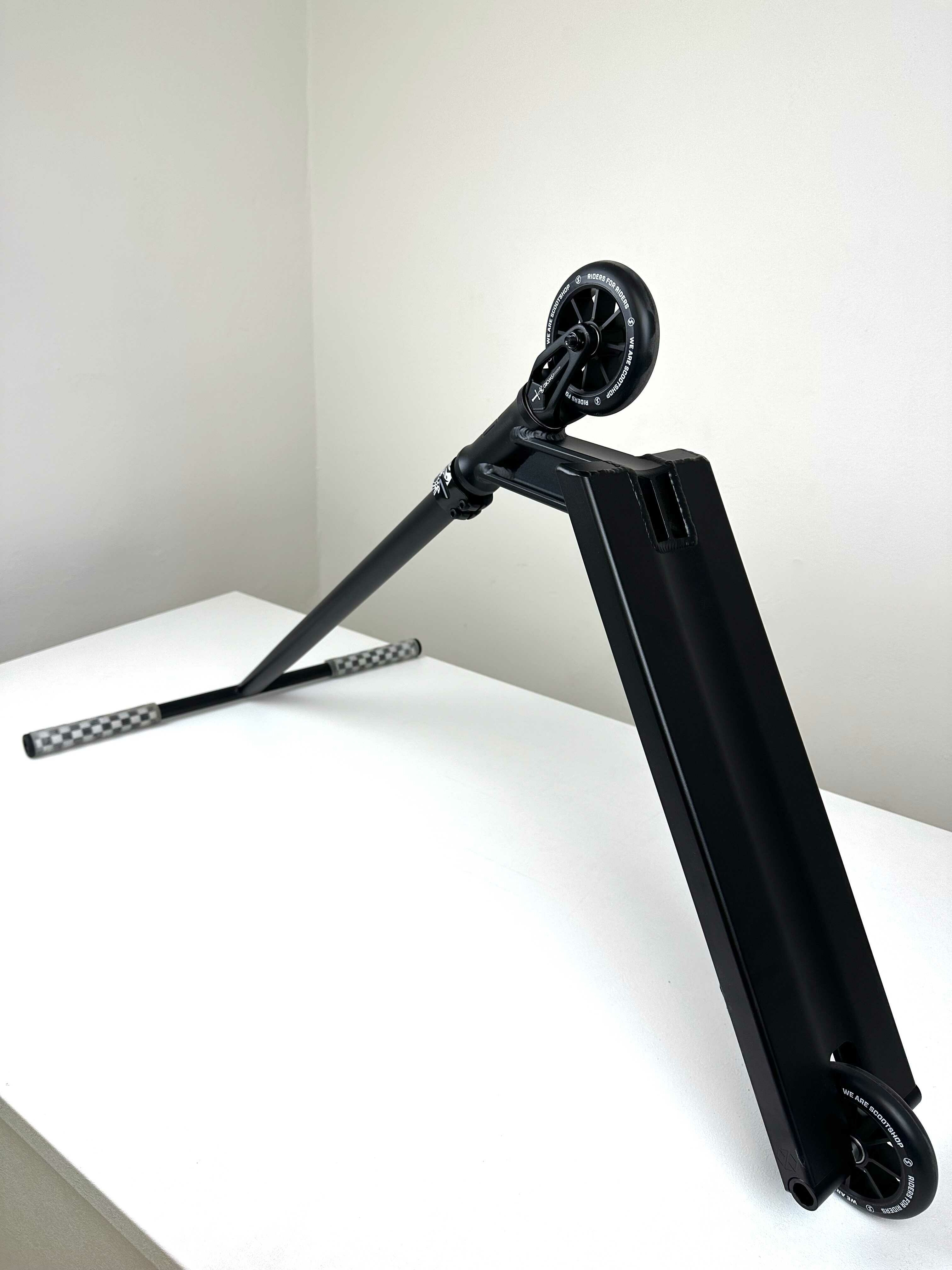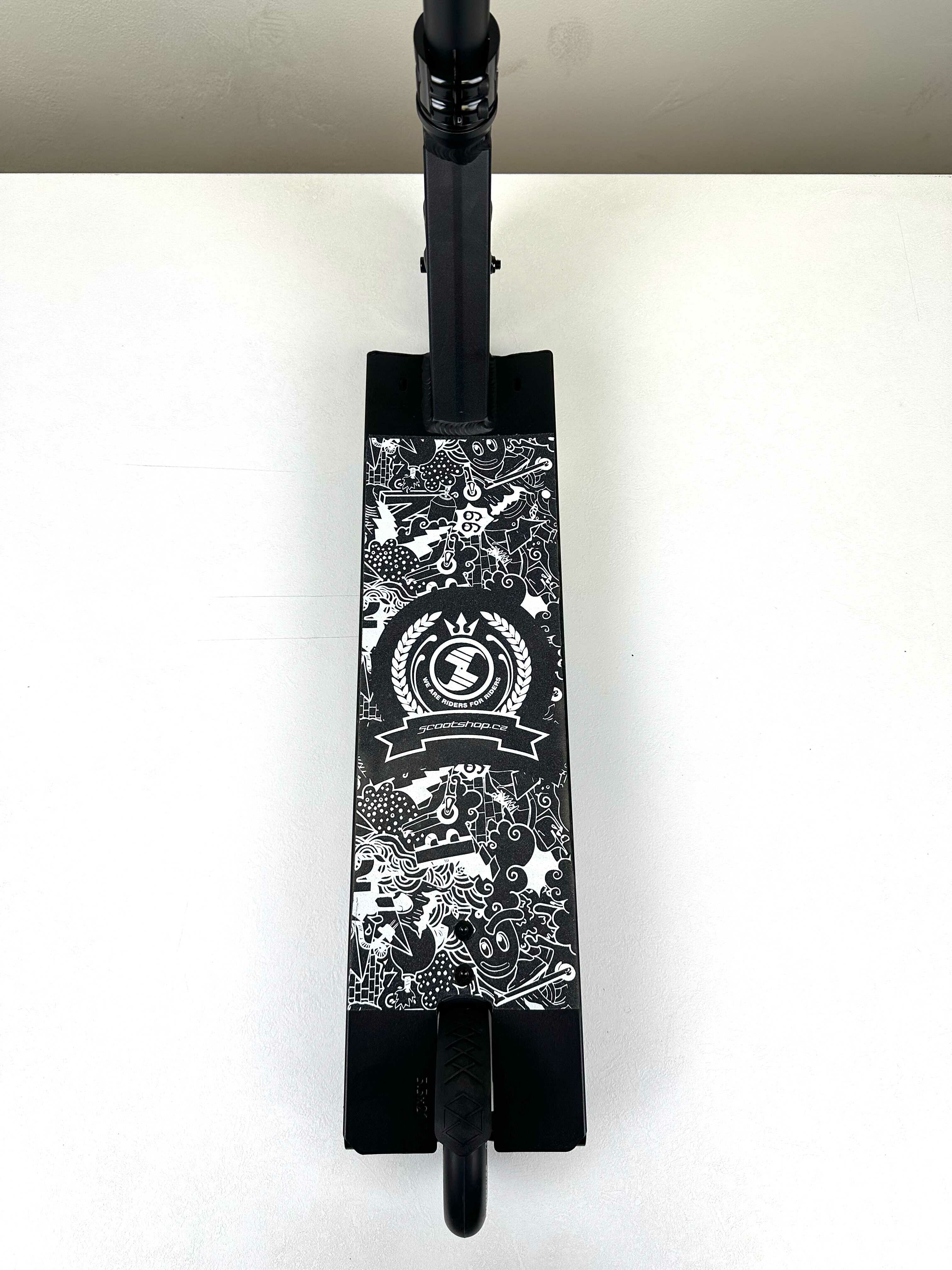 Sháníš pořádnou streetovou koloběžku a jsi mírně pokročilý/pokročilejší jezdec? Máme pro tebe jeden super komplet za super prachy. Tahle koloběžka váží pouhých 3,8 kg a díky prémiovým a kvalitním dílům je určená i pro hrubější ježdění po ulici. Na koloběžce jsou kvalitní ocelová řidítka Ethic Tenacity s rozměry 670x600 mm. Na řidítkách jsou nahozené Stolen Hive Superstick gripy. Jako kompresní systém byl zvolen HIC díky tomu že se bere jako spolehlivý a pevný. Řidítka stahuje dvoušroubová Infinity objímka, která umí zaujmout svým designem. Další jasnou volbou byla vidlice od značky Addict. Celá koloběžka jede naprosto šíleně a to díky páru Scootshop 110 mm koleček, které jsou osazené ABEC9 ložisky. A jak jsme to celé zakončili? No přece pořádnou deskou! Zvolili jsme Native Advent R se Scootshop griptapem, která na street prostě patří! Rozměry desky jsou 533 mm na délku a 140 mm na šířku.