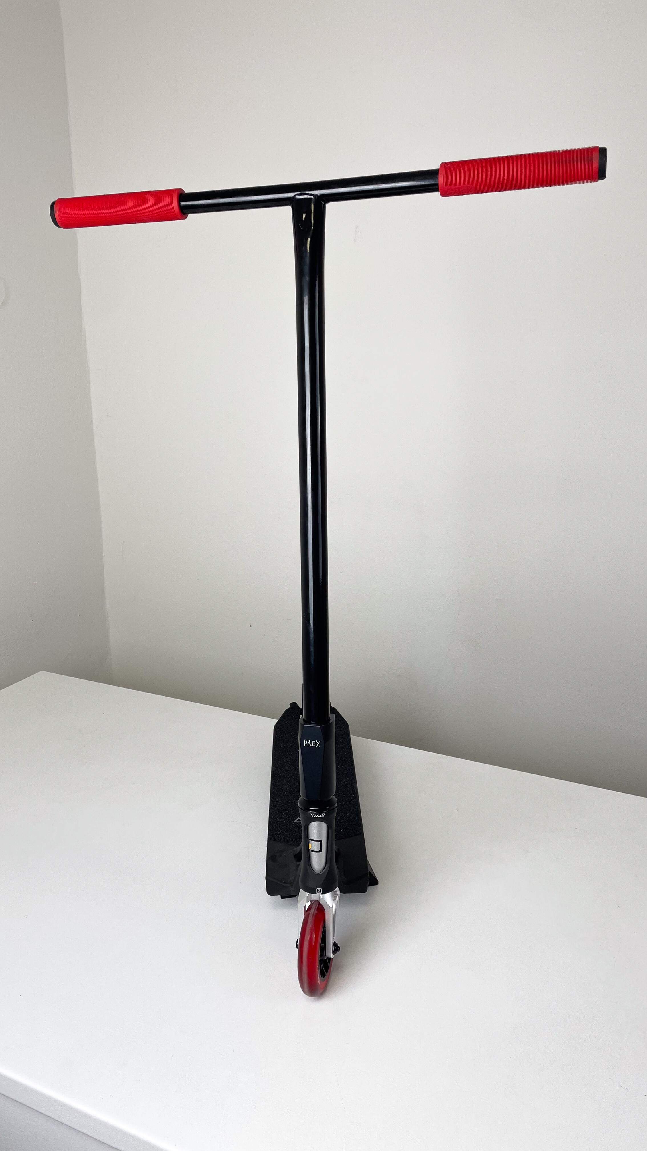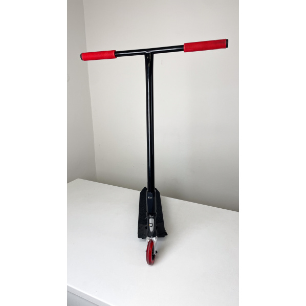 Tahle koloběžka je navržena pro středně pokročilé až pokročilé jezdce, kteří si chtějí v parku zajezdit i na railu. Díky použitým komponentům je tento build zaměřený na výkon a odolnost. Základem této sestavy je deska Ehic Vulcain 580, která nabízí ideální rozměry pro různé typy triků – s délkou 580 mm a šířkou 140 mm poskytuje dostatek prostoru a stability. Řídítka jsou legendární Blunt Thermal, vysoká 650 mm a široká 580 mm, navržená pro precizní ovládání a maximální pevnost. Komfort při jízdě zajišťují měkké a odolné Aztek gripy v červené barvě. Koloběžka je držena pohromadě díky Prey SCS kompresnímu systému, který zaručuje skvělou pevnost a snadnou údržbu. Vidlice Divine ve stříbrné barvě je nejen stylová, ale také lehká a kompatibilní s širokým spektrem koleček. Celý setup doplňuje hlavové složení Scootshop, které zajistí plynulé a spolehlivé točení všemožných triků.Pro maximální rychlost a plynulou jízdu jsou nasazena kolečka Chilli Reaper v červené barvě, která mají hliníkové středy a ložiska ABEC9.