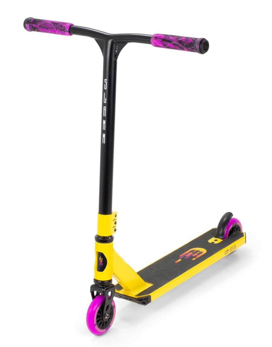 Výborná freestyle koloběžka pro ty nejmenší začínající jezdce. Výborná váha, skvělé komponenty jako např. bezzávitová vidlice s IHC compr. systémem, 100mm kolečka s ABEC9 ložisky, super řídítka.