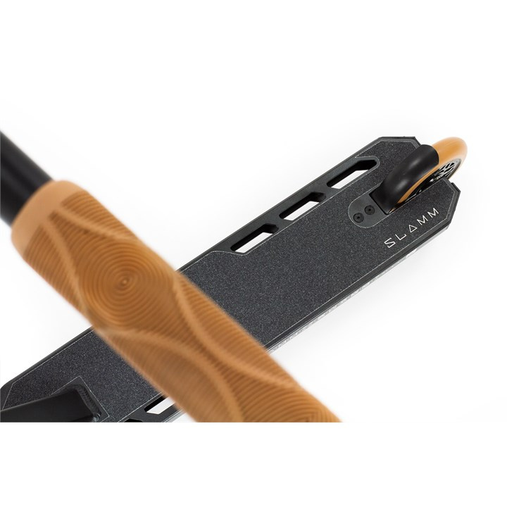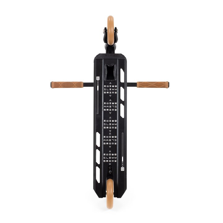 Super koloběžka pro mírně pokročilé jezdce. Koloběžka má spoustu odlehčení aby se s ní dalo co nejlépe jezdit ve skateparku. Samotná deska má 122mm šířku a 520mm délku a footspace 355mm. Na koloběžce jsou ocelová řidítka s rozměry 630 x 600 mm.