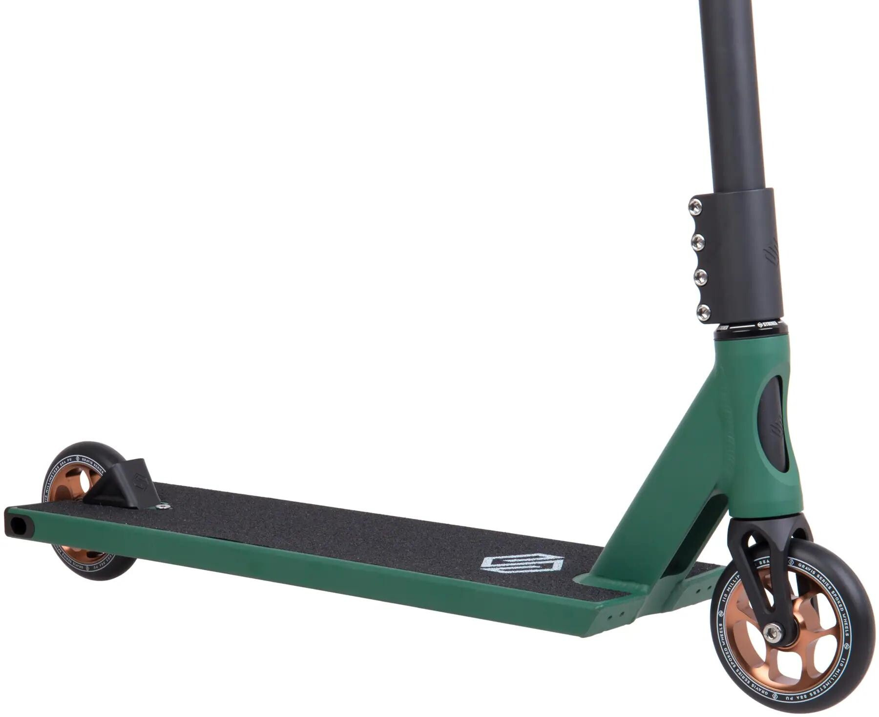 Výborná freestyle koloběžka pro street. Díky skvělé, široké desce Vám půjdou grindy jako nic. Díky SCS nemusí mít řídítka zářez a jsou o dost odolnější. Vidlice je z hliníku a jednoho kusu. Řídítka jsou z pevné ocele řady 4130. Výborná pro mírně pokročilé jezdce.