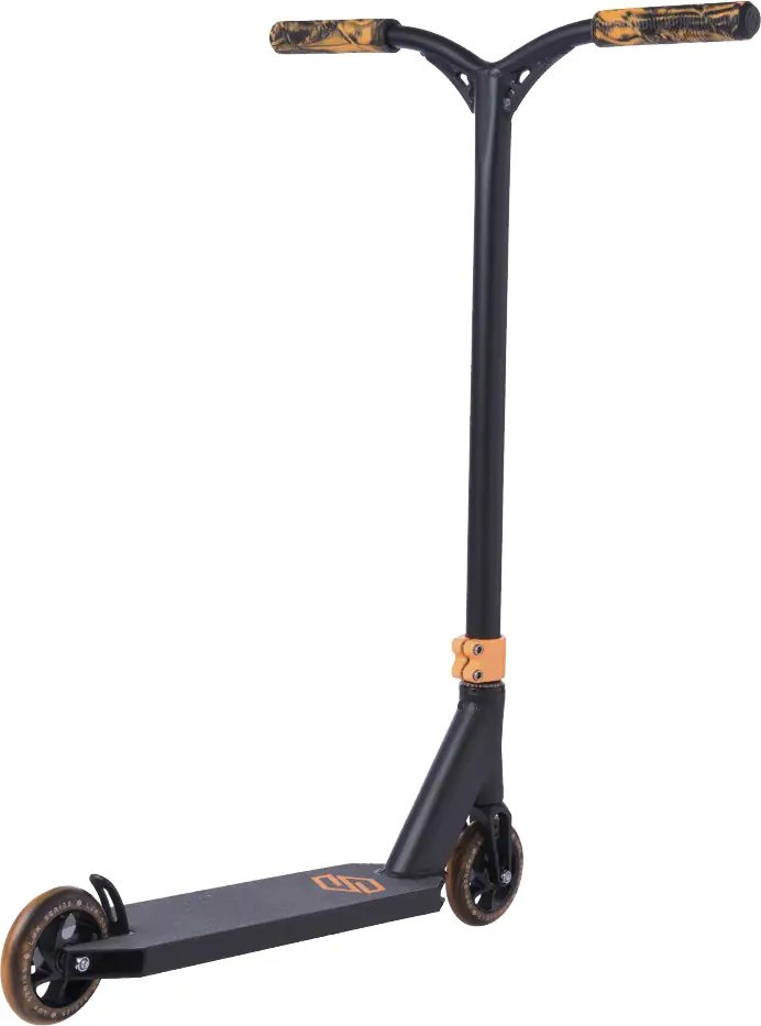 Výborná, lehká freestyle koloběžka do skateparku. Výhoda této koloběžky je, že je celohliníková. (hliníková řídítka, vidlice, deska). Díky tomu tato koloběžka váží 3,1kg. Vhodná do skateparku.