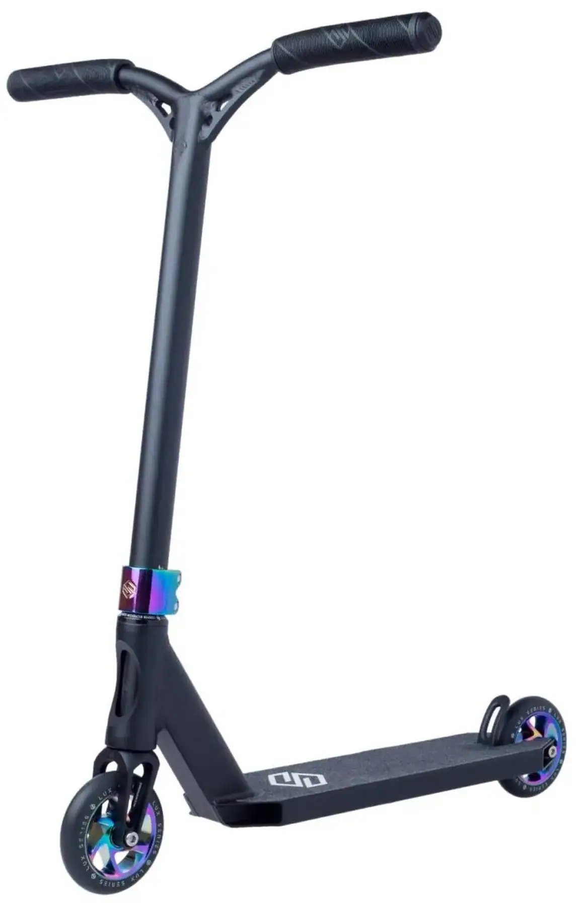Sháníte koloběžku pro svojí ratolest. Tato koloběžka je určena pro prcky do 135 cm. Výborná, lehká freestyle koloběžka do skateparku. Výhoda této koloběžky je, že je celohliníková. (hliníková řídítka, vidlice, deska). Díky tomu tato koloběžka váží 2,95kg a je s ní lehká manipulace.