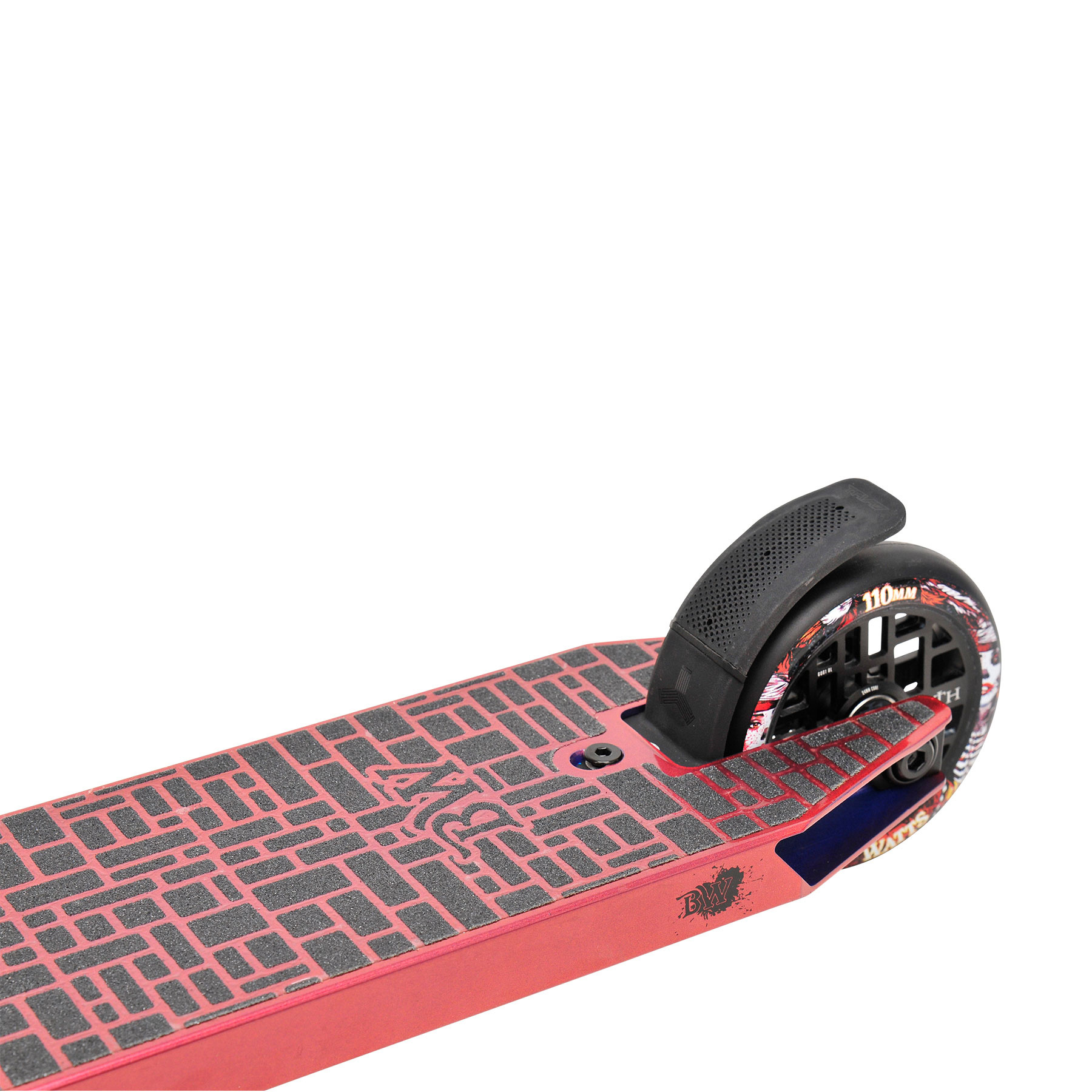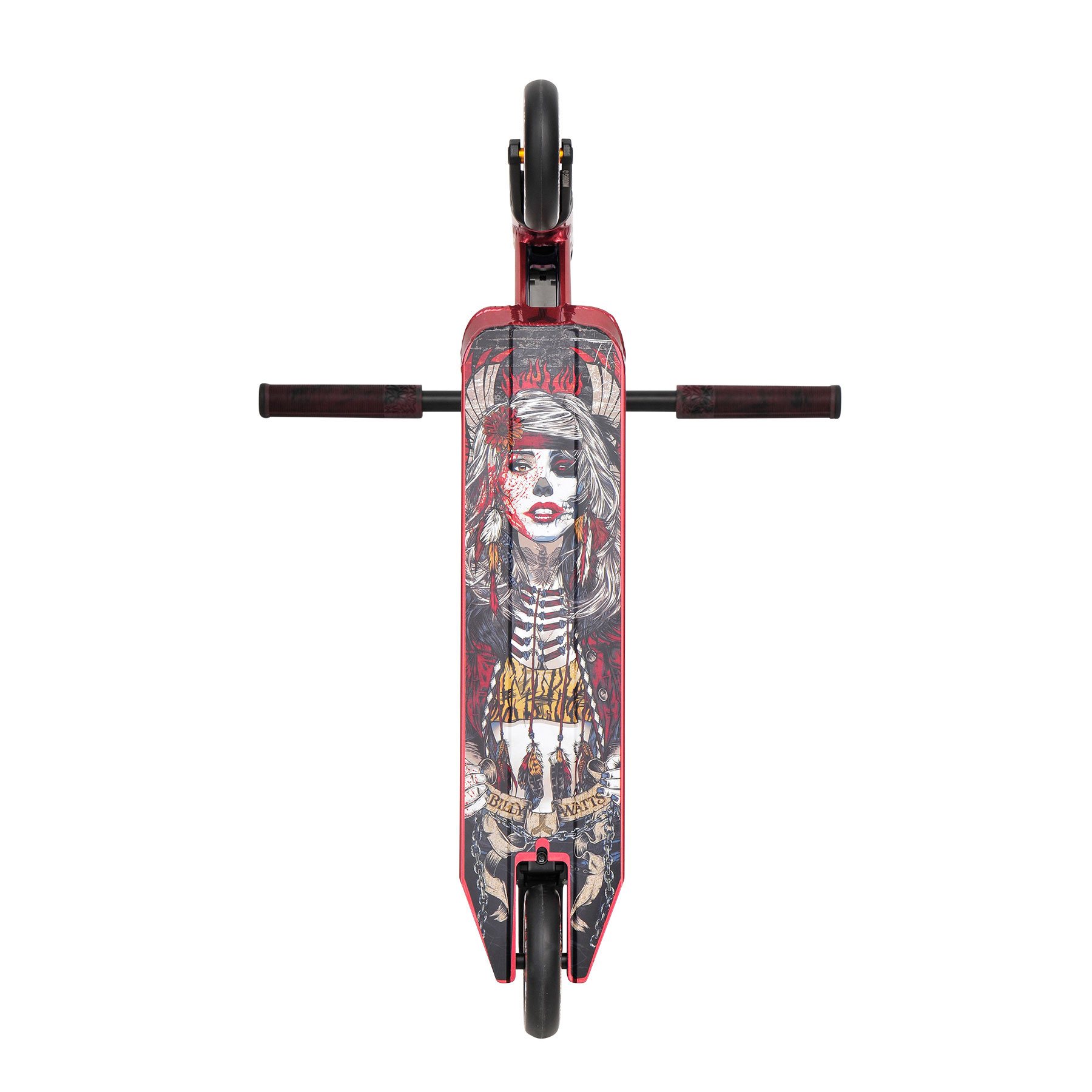 Výborná, kvalitní freestyle koloběžka pro pokročilé jezdce. Tento model navrhl jeden z nejlepších jezdců na světě Billy Watts. Výborná koloběžka do skateparku. Přednost této koloběžky jsou kolečka a to hlavně šířka. Šířka koleček je 26mm. Díky šířce je jízda pohodlnější a rychlejší. Brzda je tzv. 2v1. Můžete horní část odejmout a brzda bude nepohyblivá.