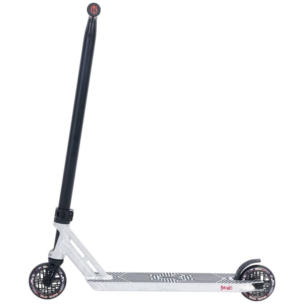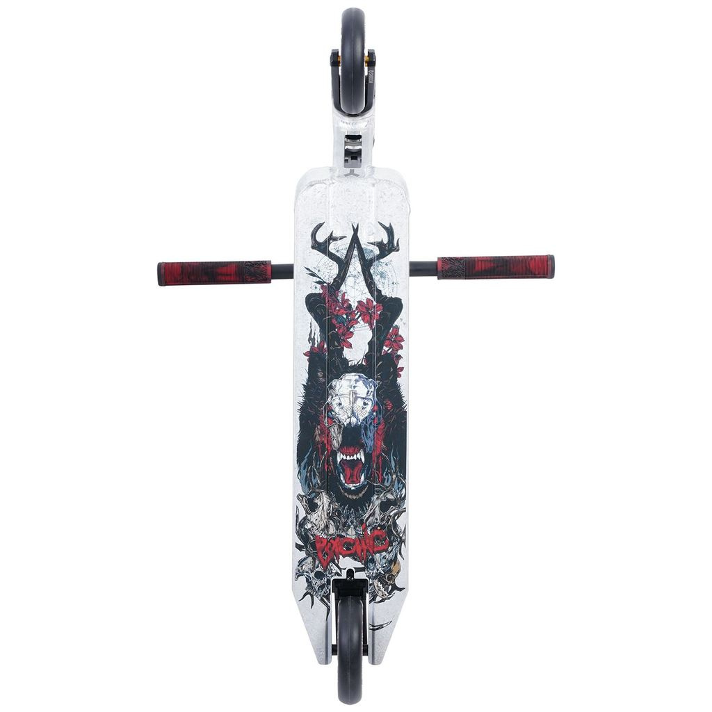 Super koloběžka pro mírně pokročilé jezdce do skateparku. Kompresní systém koloběžky je IHC. Koloběžka vyniká svými hliníkovými řidítkami s rozměry 620 x 564 mm. Vnější průměr řidítek je 35 mm a vnitřní je 28 mm. Na koloběžce je stará osvědčená klasika Triad Psychic deska. Rozměry desky jsou 520 x 120 mm, footspace je 360 mm. V desce je integrované hlavové složení. Na desce je hliníková Oath Shadow IHC vidlice, ve které je Oath Lattice kolečko s rozměry 110 X 26 mm. Objímka je Oath Cage V2 na 2 šrouby.
