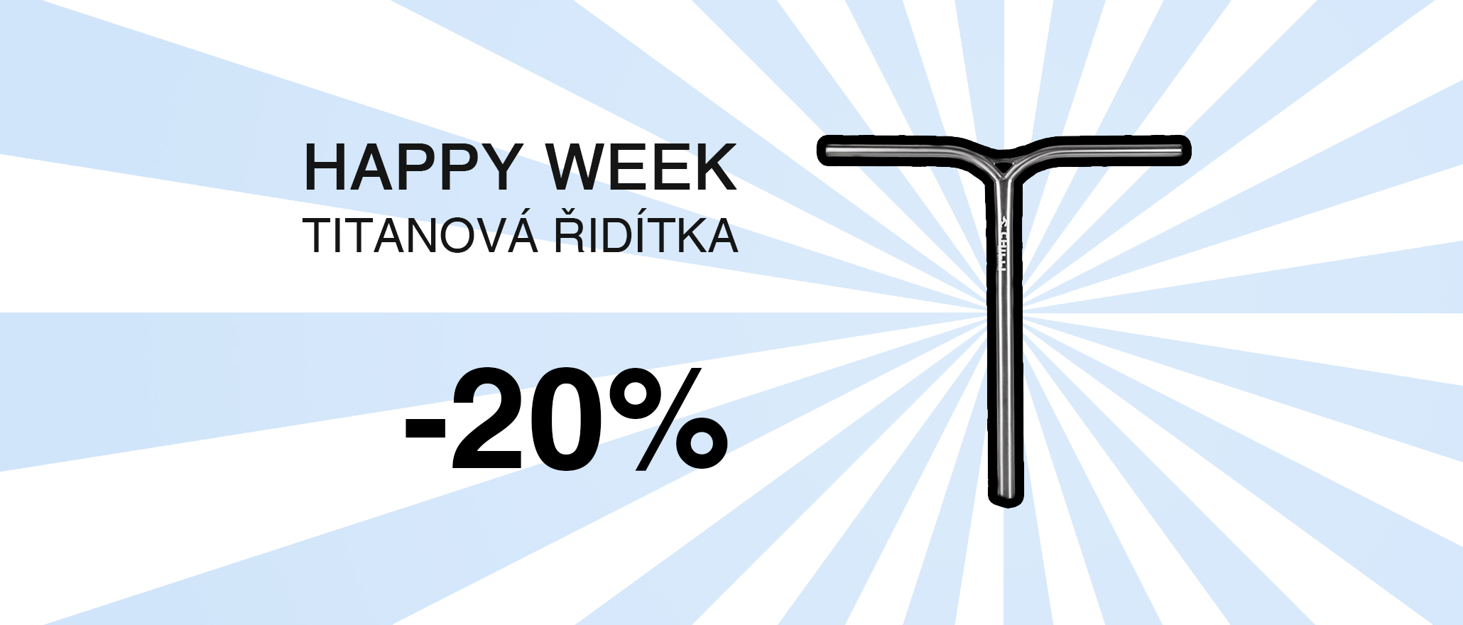 Máme tady další HappyWeek a to na titanová řídítka! Chceš mít lehkou koloběžku? Motat Tailwhipy, barka uplně snadno? Tak mrkni na náš eshop a pořiď si titanová řídítka!