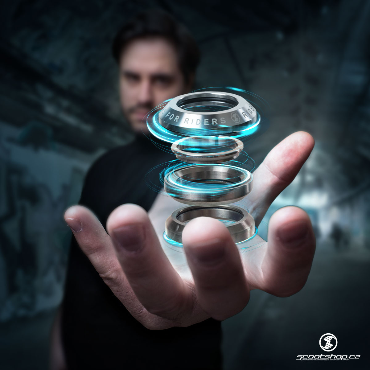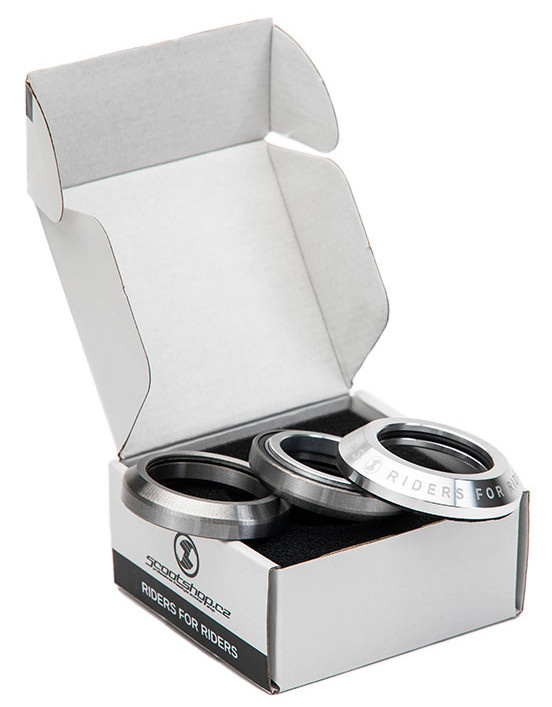 Hlavové složení neboli headset zajišťuje ladné otáčení řidítek. Scootshop je internetový obchod od roku 2011 a je vedený jezdcemi a určený pro jezdce. Hlavní výhodou tohoto headsetu je pogumovaný top cap(čepička hlavového složení), výhoda pogumování je že necinká při jízdě na nerovném povrchu jako ostatní headsety, které nedisponují gumovým kroužkem. Headset je bezzávitový, integrovaný a hlavně je vyráběn z nejkvalitnějších průmyslových ložisek. Obsahem balení jsou 2 ložiska, top cap a c-ring.